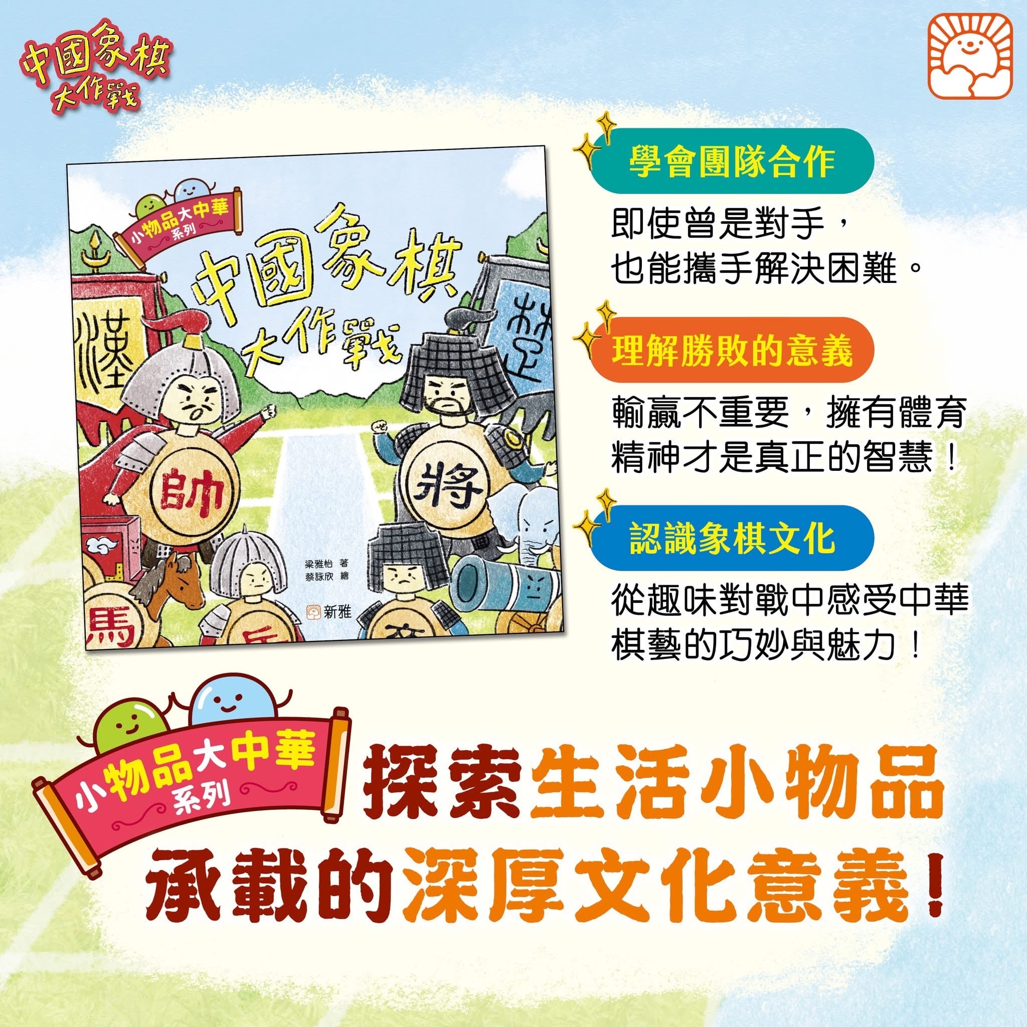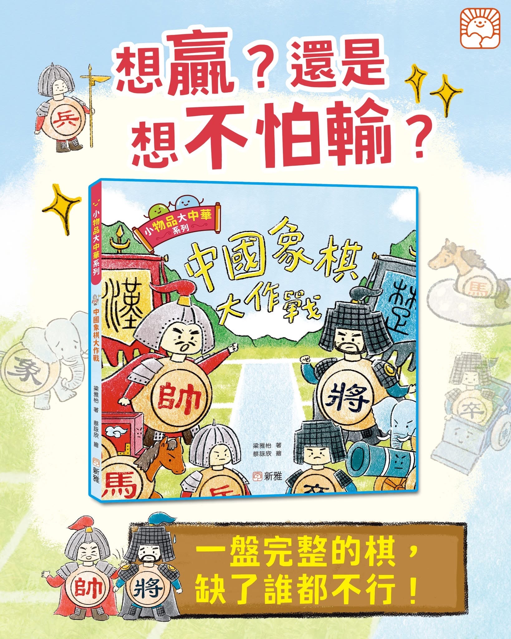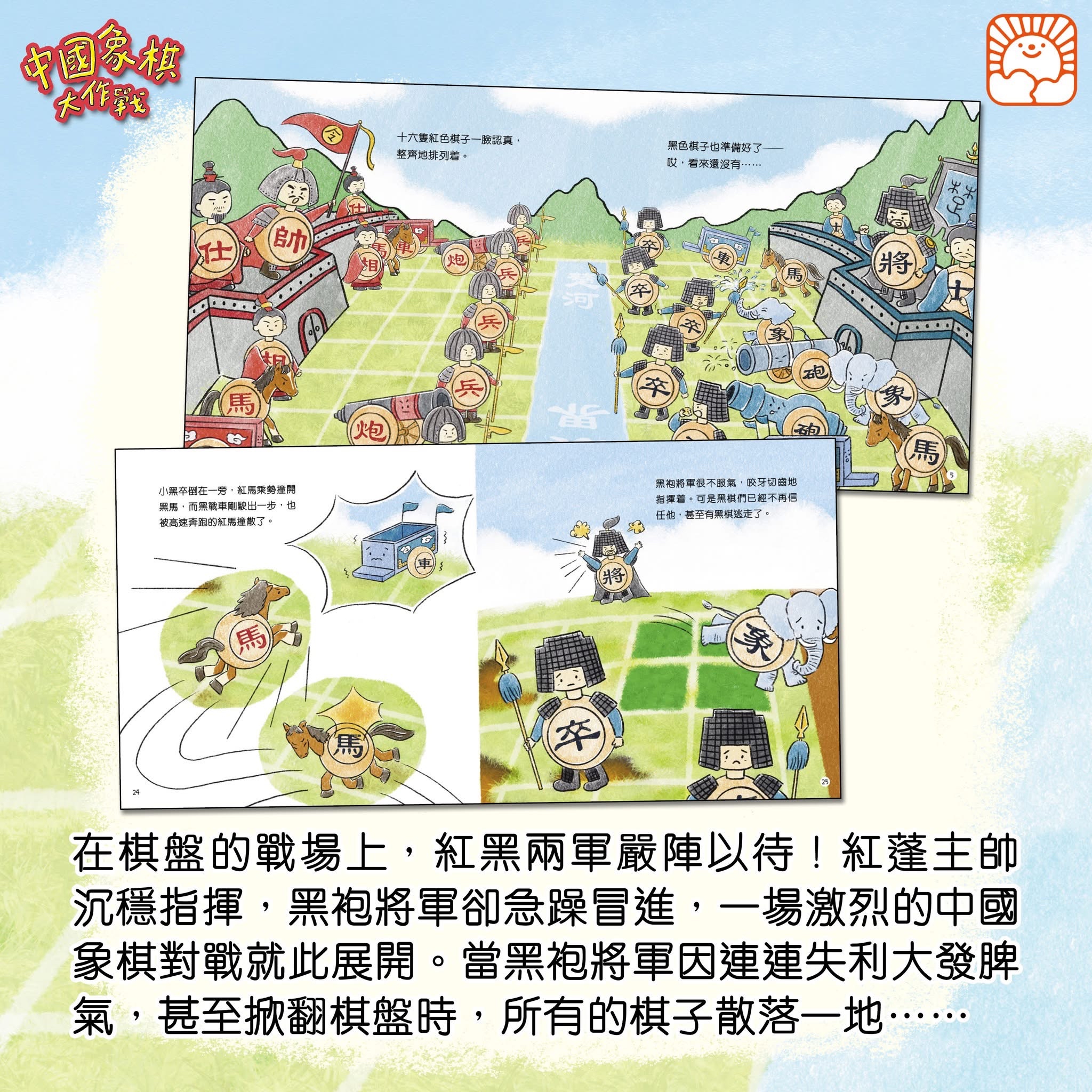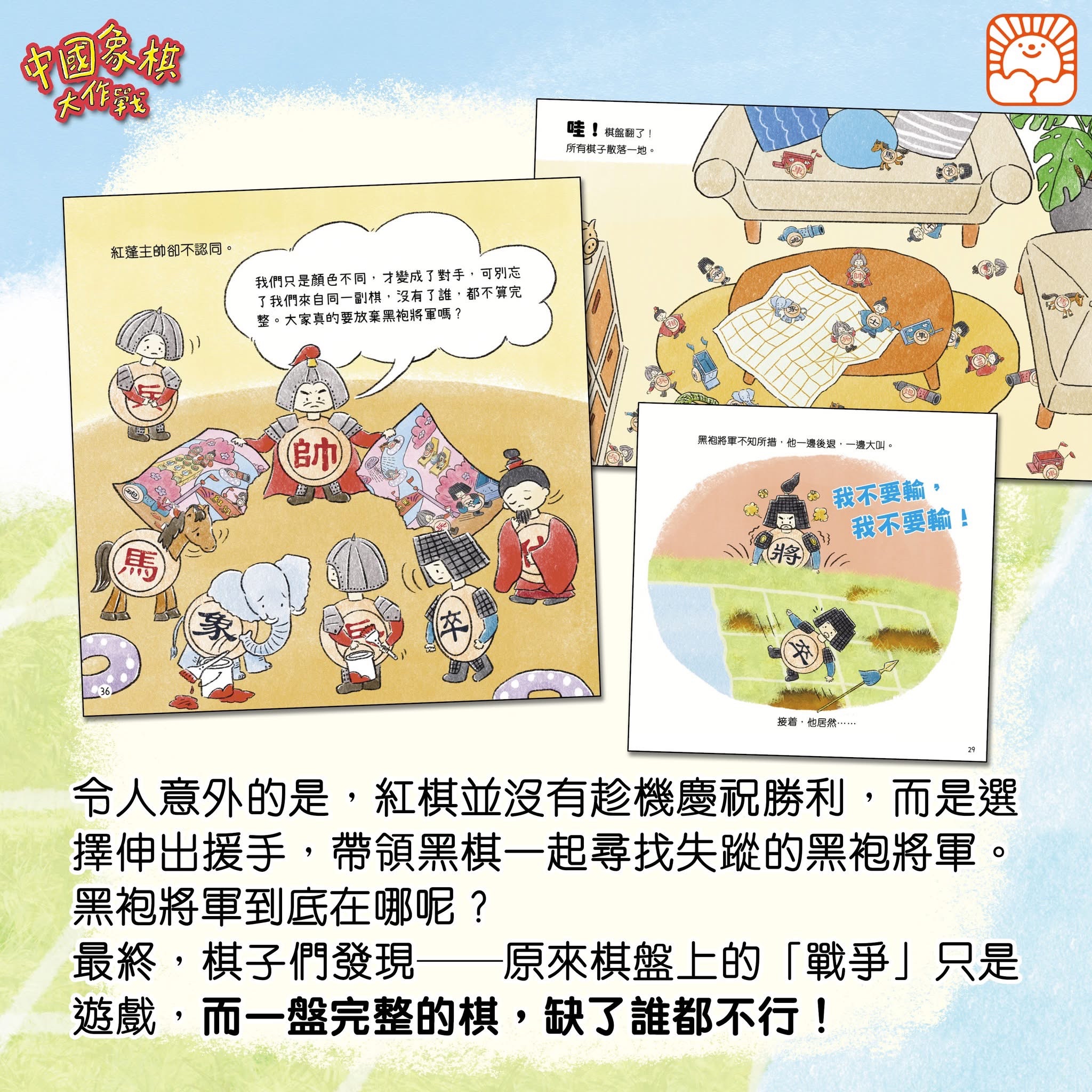 【《#中國象棋大作戰》🔴⚫️ ── 想贏?還是想不怕輸?*】 近數星期來,大家都在看全運會,你可知道「象棋」也是全國運動會群眾賽事之一嗎😏? 下棋以至所有比賽,有誰不想贏🏅? 可是比賽對壘總有人會輸,當你明知要輸了, 會怎樣面對🙁? 這正是作者 #梁雅怡 在《小物品‧大中華》 系列第二冊《中國象棋大作戰》的寫作理由︰ 怕輸是人之常情,問題是要學懂面對❗️ #不怕輸,#需要很多勇氣❤️🔥!!! 學懂面對「輸」,內心會更強大💗, 這就是現代人面對情緒壓力的逆境智商。 希望大小朋友看到這故事, 也體會到體育精神的意義💪! 《中國象棋大作戰》故事簡介: 在棋盤的戰場上,紅黑兩軍嚴陣以待!紅蓬主帥沉穩指揮,黑袍將軍卻急躁冒進,一場激烈的中國象棋對戰就此展開。當黑袍將軍因連連失利大發脾氣,甚至掀翻棋盤時,所有的棋子散落一地……令人意外的是,紅棋並沒有趁機慶祝勝利,而是選擇伸出援手,帶領黑棋一起尋找失蹤的黑袍將軍。黑袍將軍到底在哪呢?最終,棋子們發現——原來棋盤上的「戰爭」只是遊戲,而一盤完整的棋,缺了誰都不行! 書中另附關於象棋的小知識,帶你探索中國象棋的奧妙。 《小物品‧大中華》系列繪本以孩子熟悉的日常物品為主角,透過生動有趣的故事,帶領小朋友探索這些小物件背後的文化意義。