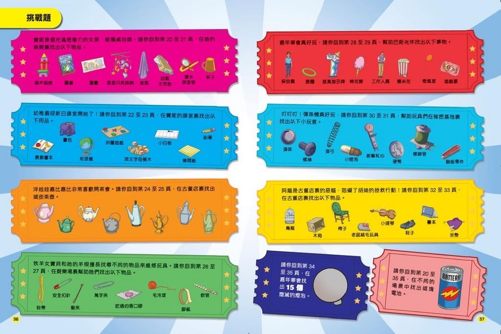 📚本書包含16個精彩場景😍與《反斗奇兵》角色一起展開冒險‼️ 本書收錄了《反斗奇兵》電影🎬的經典場景,🔍以找找看遊戲形式結合了場景插圖與角色搜尋,讓讀者可以經典重溫,挑戰觀察力。 👉🏻除了每個跨頁的找找看任務外,更附挑戰題,增加任務數量和🆙提升難度,更加耐玩。 準備好出發了嗎? 🧸🪆走進玩具世界,和胡迪、巴斯光年一起勇闖未知,迎接每一場驚險刺激的挑戰!從繁忙街道到熱鬧派對,他們的身影藏在城市的每個角落一—你能一一找出他們嗎? 📖本書精選《反斗奇兵》電影中最精彩、最熱鬧的場景,等你來挑戰觀察力與專注力!場景越熱鬧,挑戰越刺激!請你👀找出胡迪、巴斯和他們的伙伴,破解線索、揭開秘密,還有更多驚喜細節等你來發現。快打開這本書,展開一場充滿驚喜的「找找看」挑戰吧!