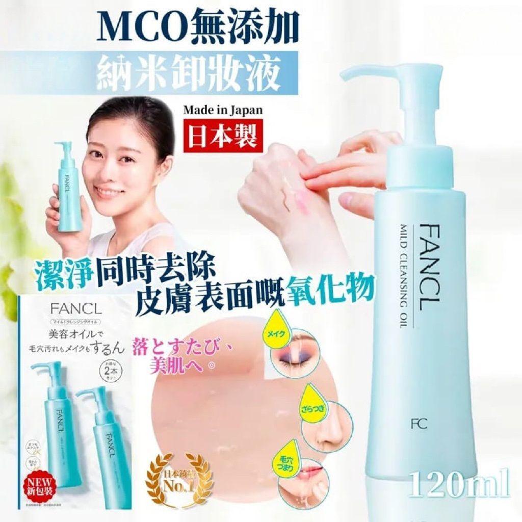 🇯🇵日本FANCL皇牌 🏆 #MCO納米卸妝油(孖裝) 仲要係日本藥妝版😍 📦供應商現貨,約2-3星期到貨 堅持無添加,在迅速卸除難纏🌈彩妝及惱人角栓的同時,也能夠保留肌膚所需滋潤,卸妝可以變得很輕鬆,保養可以變得很簡單✌🏼✌🏼 最正係能高效溶解毛孔內的堆積油脂及角栓,💦潔淨同時去除氧化物,預防肌膚因化妝而老化變黃。有效抗氧化👍🏻 卸妝同時去除面上黃氣;有助保濕,肌膚用後幼滑剔透。而且質地順滑易推,具充足厚度,發揮「cushion」作用,隔絕摩擦,俾肌膚最溫柔呵護😘 🎉採用MCO納米速淨技術,微細分子能將化妝品浮起,潔淨👁眼部、👄唇部,不殘留化妝殘漬,加水後乳化,清洗容易,且令肌膚柔滑。 🌿產品成分:🍃綠茶兒茶素油、🌹玫瑰果油、🥥椰子保護油。💐白芒花籽油,完美複合精油,油份+卸妝成份的最佳比例。 💥升級重點一:「白芒花籽油」~來自綠地上的白泡沫,溶解角栓展現絕佳潔淨力!👉🏻溫和洗淨 護膚無負擔 💥升級重點二 :「完美複合精油」呈現了卓越卸除力,頑強彩妝或看不見的髒污都能迅速卸除!👉🏻迅速溶解 惱人角栓不存在 💥升級重點三 :「油份+卸妝成份的最佳比例」,獨有保濕潔淨配方,堅持在洗淨時,溫和不刺激,肌膚底層仍擁有滿滿滋潤 💆🏻♀️使用方法: 1. 溶解:在塗抹潔顏油前,雙手及臉部需保持乾燥。將約1元硬幣大小的潔顏油塗抹在臉部,用指腹以畫圓的動作由下而上的方向輕輕按摩全臉肌膚,溶解彩妝及污垢。 2. 沖洗:用大量的清水(以微溫的水爲佳)沖洗乾淨,沖洗的過程中同時乳化哦 容量: 120mlx2