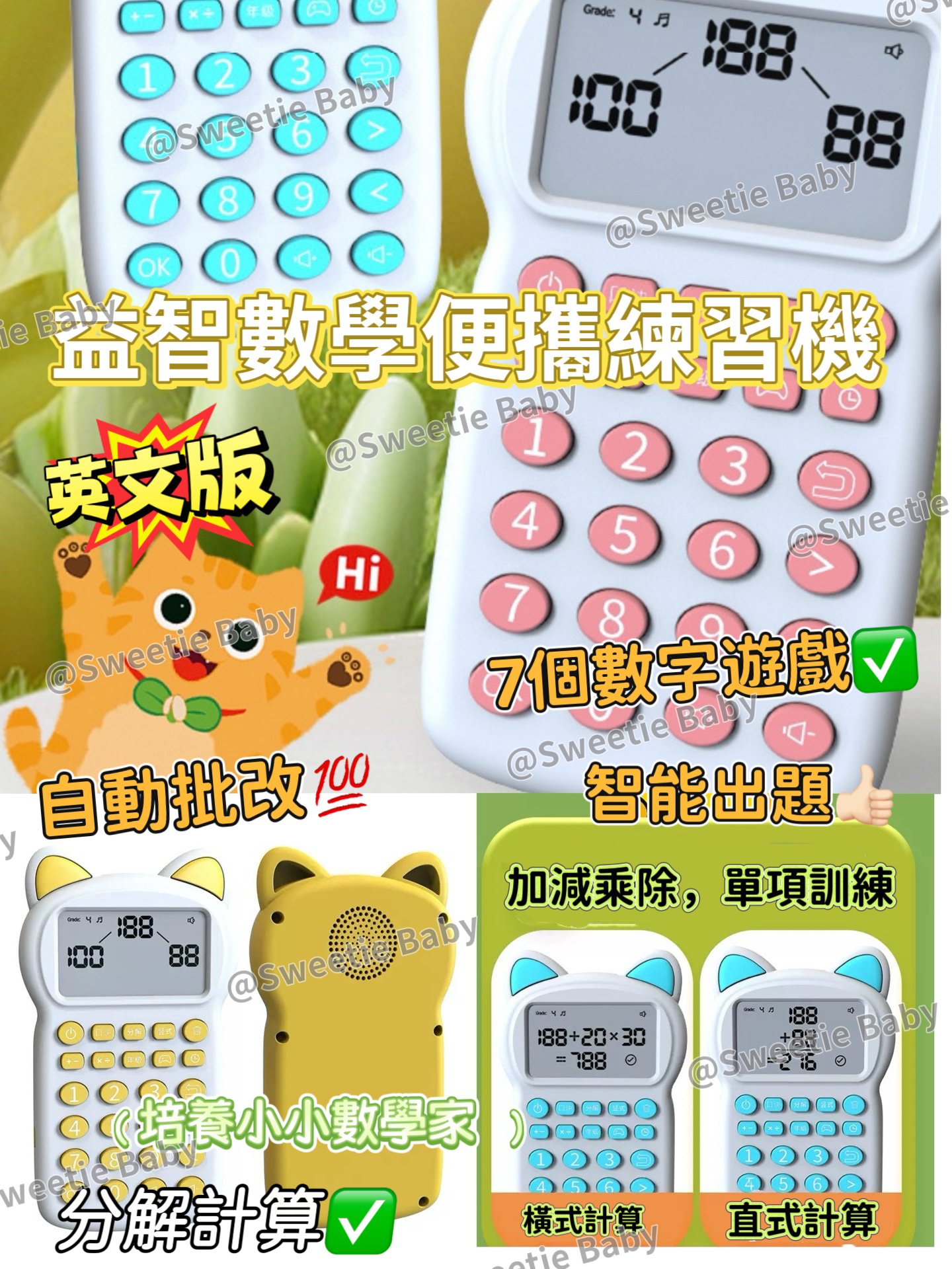 ⭐️益智數學便攜練習機 (英文版) ❤️🔥超筍價 ➡️💰$69/部❤️🔥 真係超級正,小朋友玩到愛不釋手! 出街仲比朋友搶着玩,唔使再對住手機啦! ➕️ #可以隨時隨地都玩到數學題目 ➖️ 🤭 #平過買部計數機就可以培養小小數學家 🤭 ✅心算練習 ✅思維邏輯 ✅邏輯鍛煉 近期勁🔥Hit🔥嘅兒童教學產品👦🏻👧🏻 便攜式加減 ➕➖/乘除 ✖️➗ 遊戲機 唔好睇呢部機外形細細部🤏🏼🤏🏼 可以掛喺書包🎒或帶出街玩😍😍 隨時隨地都可以玩轉數學題目👏🏼👏🏼 好過佢哋成日出街要玩電話📱整壞眼👀 呢款練習機係專門為小朋友設計💁🏻♀️💁🏻♀️ 於遊戲中學習增加對數學嘅興趣👩🏻🏫👩🏻🏫 同時加強小朋友心算能力💪🏽💪🏽 ✅️內置200萬+題目可以隨時隨地練習 ✅️內置小遊戲 (記數字,找大小,找規律) ✅️計數模式仲可以設定時間增加成功感 ✅️多種學習模式,學習有計劃效果高一倍 ✅️玩學二合一,激發興趣讓小朋友愛上數學 ✅有️輔助工具容易教、容易明,容易記 ❤️A款 ➡️ 粉紅色 💙B款 ➡️ 藍色 💛C款 ➡️ 黃色