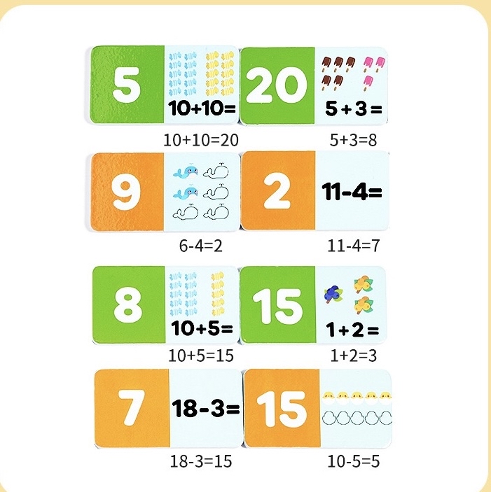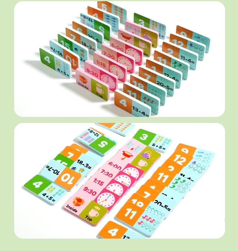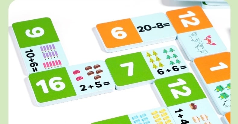 想讓孩子愛上數學❓玩具腦提供一系列數學教具,讓抽象概念變得有趣!我們精選多款兒童數學玩具,從數感啟蒙到邏輯思維訓練,幫助孩子建立穩固的數學基礎👍🏻 內有56 片骨牌💭 透過加法和減法問題幫助孩子練習數學技能💪🏻 🌟學習模式: 骨牌設計色彩繽紛,包含數字、數學符號和插圖,讓孩子們在遊戲中視覺化數學概念,進行觸覺學習。