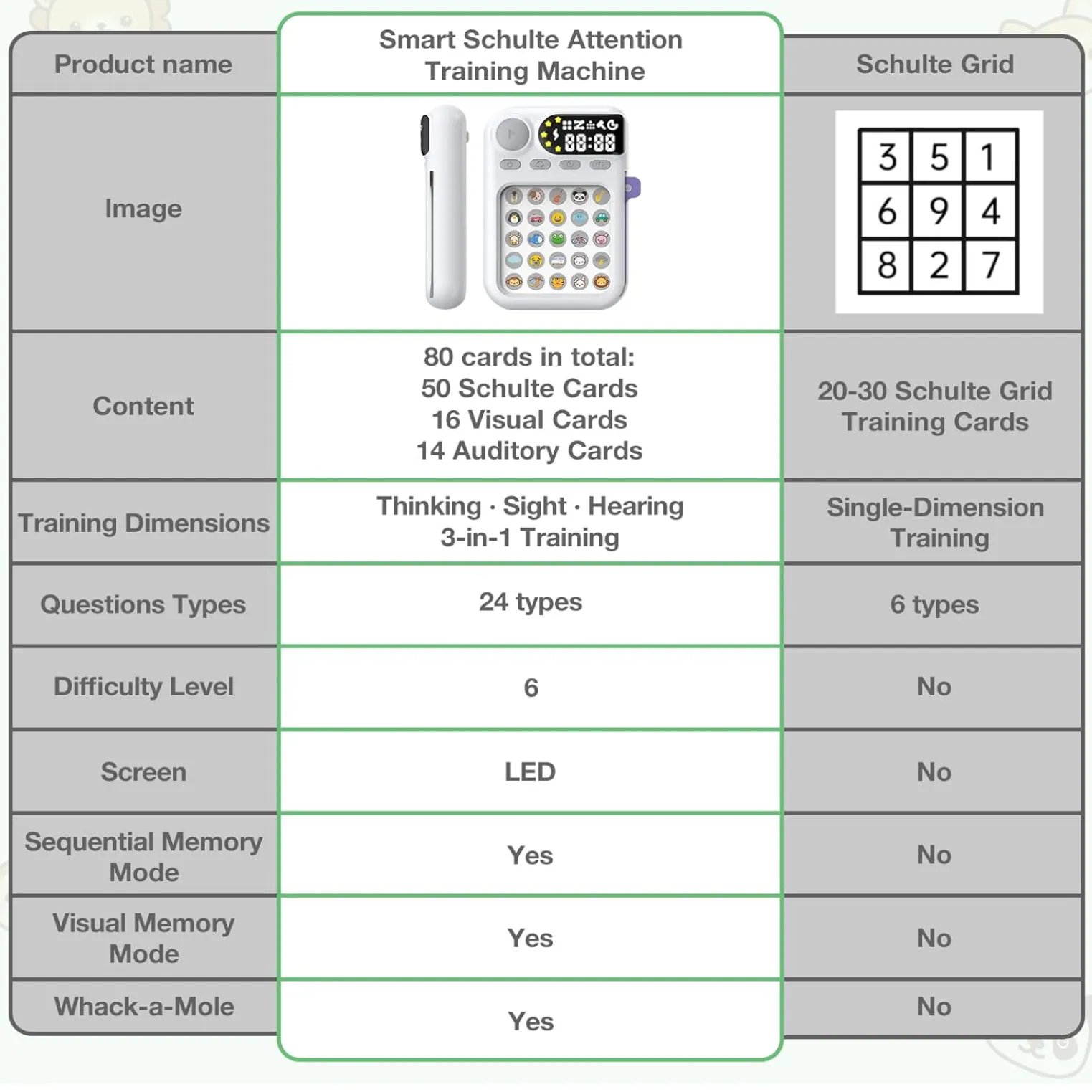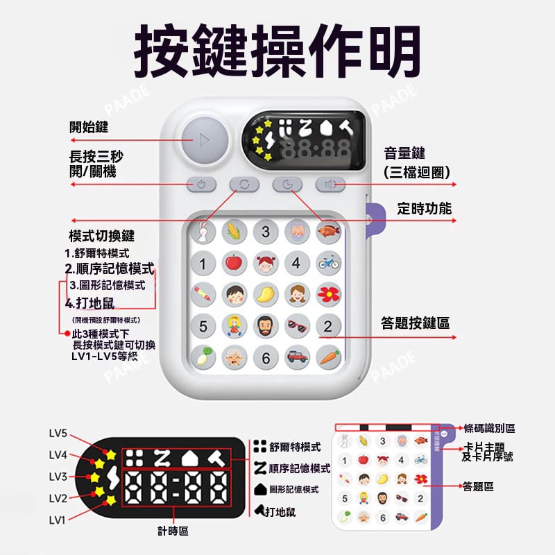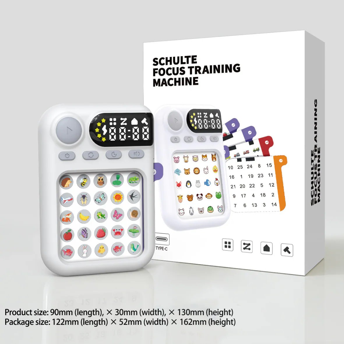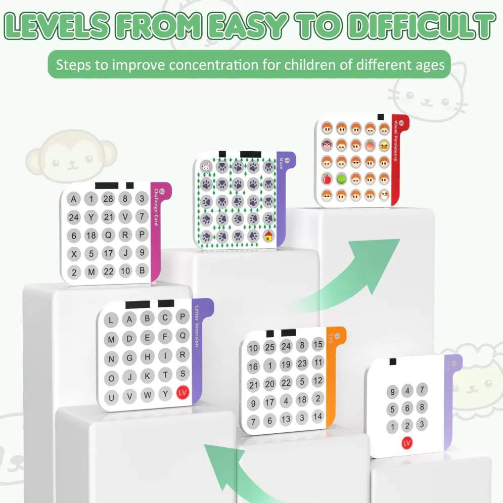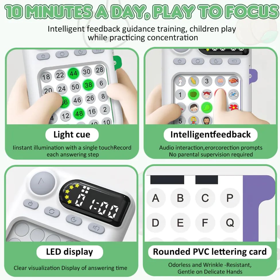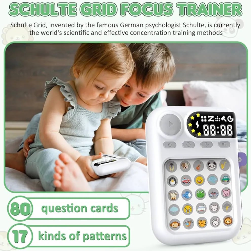 舒爾特專注訓練機(英文版) 三維立體訓練系統👍經典注意力提升神器來襲! 不只是玩具,是一套科學設計的學習系統🥰 以舒爾特方格為基礎設計🔍25格隨機數字排列 眼👀耳👂手👋腦一起動一動 字圖結合🌀舉一反三 ✔️80張題卡 由簡至難 鍛鍊視覺搜索、專注力和周邊視野 🚀 要快速找到數字、圖形或字母完成挑戰 可以訓練孩子的專注力和反應力 5種難度模式計時記錄進度,輕鬆追蹤提升曲線 📈 掌上APP輕巧攜帶,10分鐘每日練習 工作學習效率UP 30% 💪! 邊玩邊學,擺脫分心魔咒,成為專注高手 😎 親子共玩或自用療癒,點亮腦力潛能 🌟 ⭕️專注力⭕️記憶力⭕️思維邏輯 ⭕️反應力⭕️觀察力👀