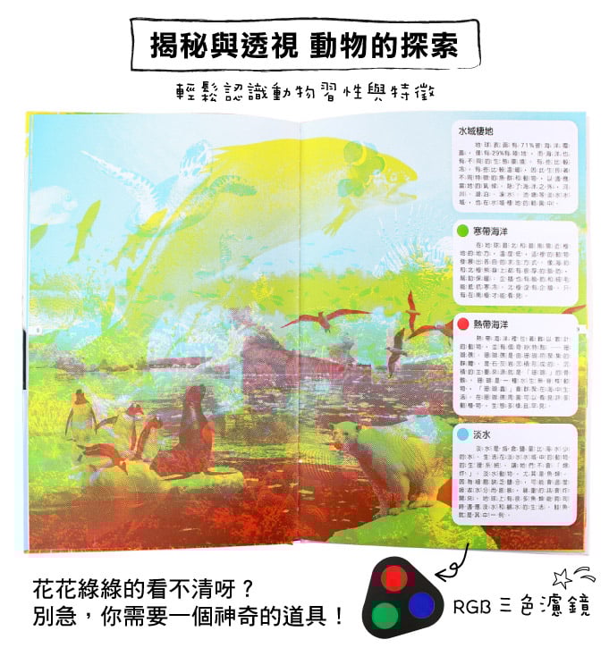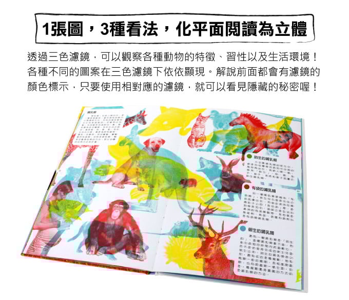 🔸預購特價現貨1月下旬到貨🔸揭秘與透視 動物的探索-三色濾鏡書