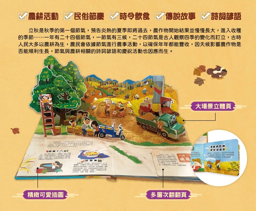 🔸預購現貨11月下旬到貨🔸我們的二十四節氣【秋收】:立秋、處暑、白露、秋分、寒露、霜降(立體書.有聲故事.操作遊戲書)