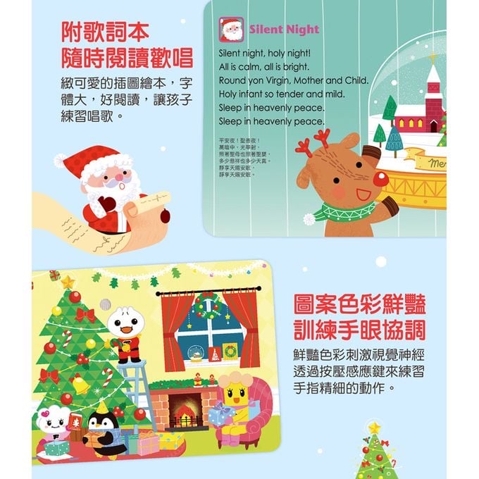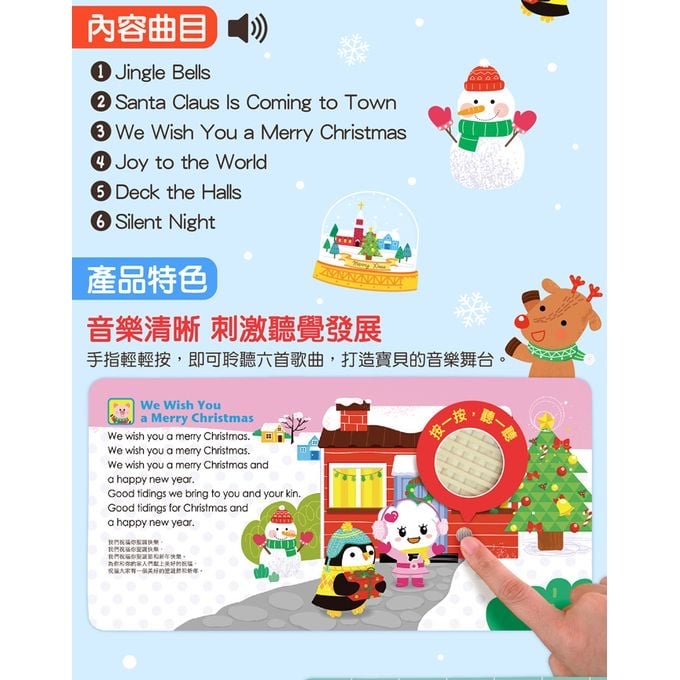 讓寶寶👧🏻👦🏻玩黏土、貼貼紙、拼拼圖、唱歌與閱讀,和FOOD超人一起度過快樂的聖誕節🎄 🌈內容物 1.聖誕歌謠有聲書 2.歡樂聖誕貼紙包(60張) 3.聖誕魔法著色本-雪人 4.FOOD超人歡樂聖誕拼圖 5.小麥黏土工具組-無敵漢堡王 6.FOOD超人軟飛盤(隨機四擇一) FOOD超人聖誕遊戲禮物盒🎁內含6️⃣種不同類型的商品,包含有聲音樂書🎶著色本🖍️拼圖🧩黏土、軟飛盤與貼紙包,😍內容豐富,物超所值,陪伴孩子度過特別的聖誕節🎄,同時培養孩子的視覺👀聽覺👂手眼協調與創意等能力👍🏻 帶動全腦開發🧠提升全方位的發展,是聖誕交換禮物的最佳選擇! 💥產品內容💥 1️⃣聖誕歌謠有聲書:邊聽邊唱兒歌,學習英文、提升聽力與音樂智能 2️⃣聖誕魔法著色本:附水彩筆,沾水即可著色,發揮寶寶創意力 3️⃣歡樂聖誕貼紙包:60張聖誕貼紙可裝飾卡片、畫冊等,增加氣氛 4️⃣FOOD超人歡樂聖誕拼圖:42pcs拼圖,尺寸大小適中,適合練習拼拼圖 5️⃣小麥黏土工具組:玩黏土,訓練手眼協調,發揮創造力 6️⃣FOOD超人軟飛盤:可折疊安全軟飛盤,開啟寶寶運動智能 ✅附水彩筆的著色畫,讓孩子盡情享受彩繪的創意 只要沾水💦,不需要顏料及調色盤,就能畫出美麗的彩色畫,不怕弄髒雙手和衣服,適合在外作畫。 ✅邊聽音樂邊歡唱,在快樂的歌謠中學英語及律動感 藉由聖誕歌謠讓孩子快樂律動,培養音樂的潛能,並增加身體律動的協調性。 ✅多種趣味遊戲,激發創意和智能 無論是玩貼紙還是玩黏土、拼拼圖,在精細的動作中,能促進幼兒大、小肌肉的協調,培養孩子勇於嘗試的能力。 ✅方便的手提包裝設計,送禮更有心意 手提包裝設計,方便收納所有的聖誕禮物,送禮自用兩相宜!