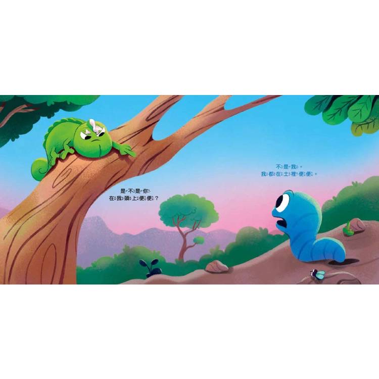 故事中的蜥蜴被一坨突如其來「疑似便便的東西」砸中,氣得不得了,於是展開一場又好笑又曲折的「追查真相之旅」。在陪孩子讀這本書時,可以試著從以下幾個方向和孩子討論: