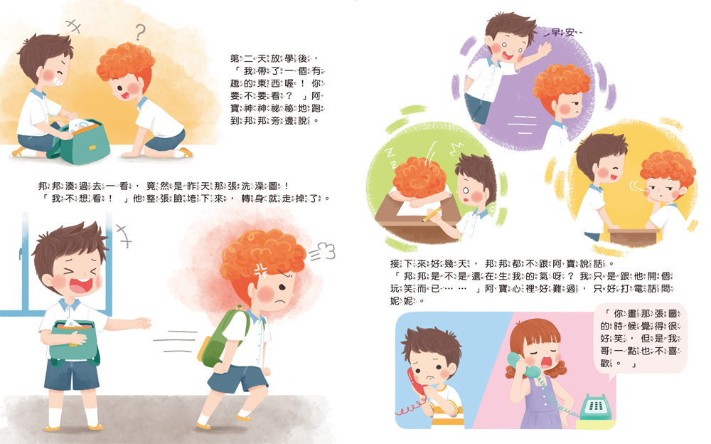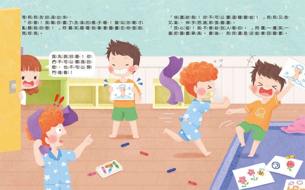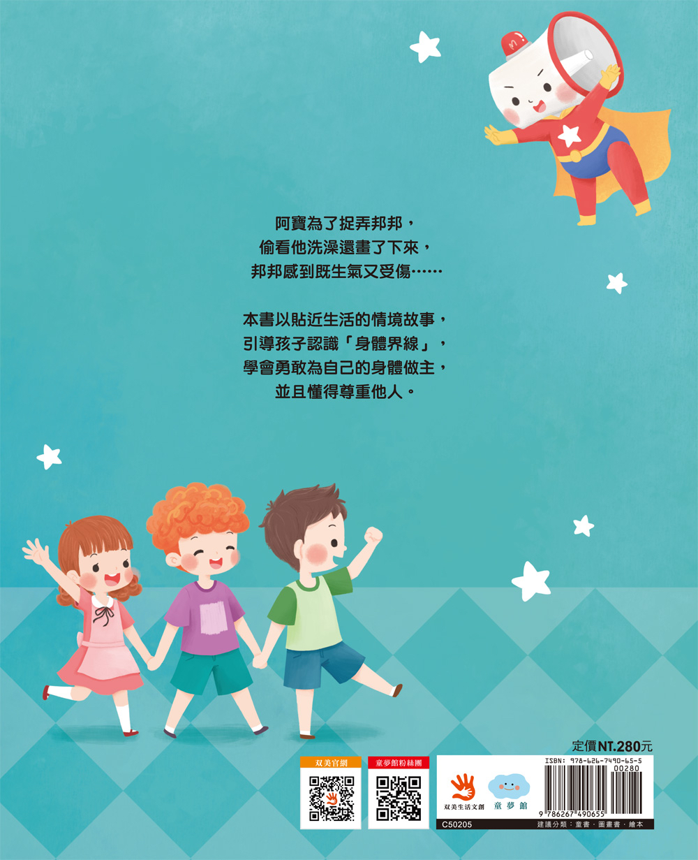✨✨我的身體我做主✨✨ ★認識「身體界線」的必讀繪本★ ★帶孩子學會保護自己,並懂得尊重他人★ 阿寶為了捉弄邦邦, 偷看他洗澡🛁還畫了下來, 邦邦感到既生氣😤又受傷…… 👉🏻引導孩子認識「身體界線」, 明白未經允許的觸碰與觀看👀, 就是越界。 透過生活化的情境與奇幻的夢境冒險, 這本書陪伴孩子理解什麼是「身體界線」, 明白身體的隱私需要被好好守護, 遇到不舒服的事,要勇敢大聲說出「不可以!」 學會保護自己,也懂得尊重別人。 📚本書特色📚 幫助孩子👧🏻👦🏻認識身體界線、學會保護自己,並懂得尊重他人。 童趣的畫風和豐富的色彩,👀吸引孩子目光。 用簡單明瞭的語言,貼近孩子的想法,讓孩子一看就懂! 內文搭配注音,適合孩子自己閱讀或親子共讀、討論。 ☀️適讀年齡:3歲以上