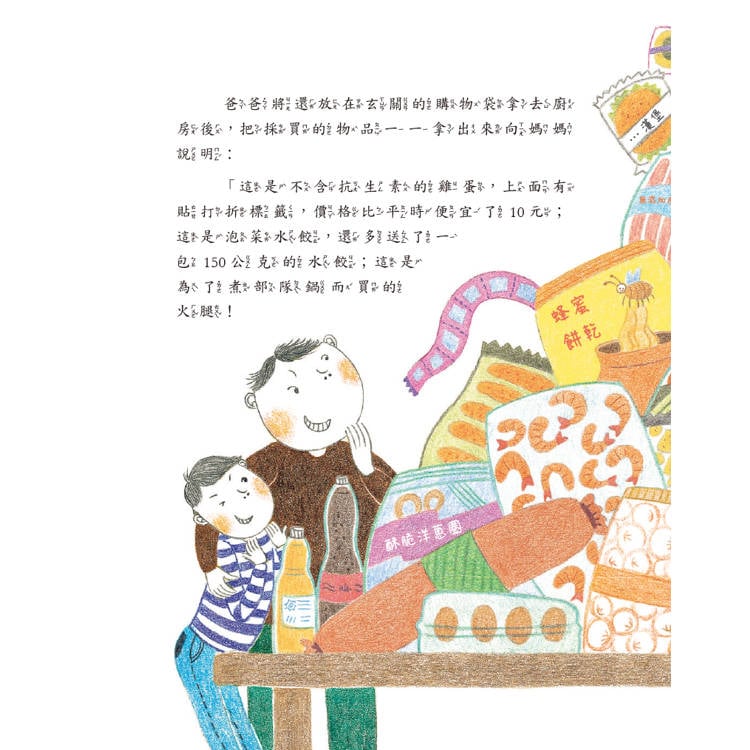 心心念念的玩具限時特價了好想買啊~! 超市買一送一大降價,這麼便宜不買多可惜! 就算只有一天也好,試著不買任何東西吧! 讓孩子分清楚是「需要」還是「想要」? 明浩和爸爸過著毫無節制的消費生活,明浩總是有很多想買的玩具,爸爸沉迷於過度飲食和電視購物,媽媽無奈地忍受他們的行為。直到他們搬家遇到新鄰居,一切才開始改變。 蕾妍是個帶來不同生活方式的鄰居女孩。牙齒矯正器在她微笑時閃閃發光,她和家人選擇回歸自然,積極參與社區耕作,舉辦跳蚤市場,並投身分享與循環經濟運動。最重要的是,他們實踐「不買任何東西的日子」,遠離過度消費。 生活中的消費誘惑無處不在。每個人都需要學會節制物質慾望,擺脫對物質的過度依賴,讓每一分錢都花得更有意義,讓生活充滿更多真正的快樂!學會節制,找回真實的快樂! ⊙兒童金錢品格教育 ⊙學會理性消費和優雅節制 ⊙反思現代人的消費生習慣 ⊙綠色消費以及消費責任 ⊙符合聯合國永續發展目標SDGs12「責任消費與生產」 本書特色 1.反思消費習慣並減少過度消費: 現代人每天都面臨購物誘惑,無論是實體店還是手機網購都讓消費變得更方便。然而,這種便利卻帶來了過度消費和浪費,對環境造成負擔。和孩子們一起檢視消費習慣,減少不必要的浪費。 2.學習「物質與精神」的平衡: 書中對比了兩種生活方式,主角和家人習慣性地衝動購物,而隔壁鄰居則選擇回歸自然,大人和孩子們都應避免過度消費,達到物質和精神的平衡。