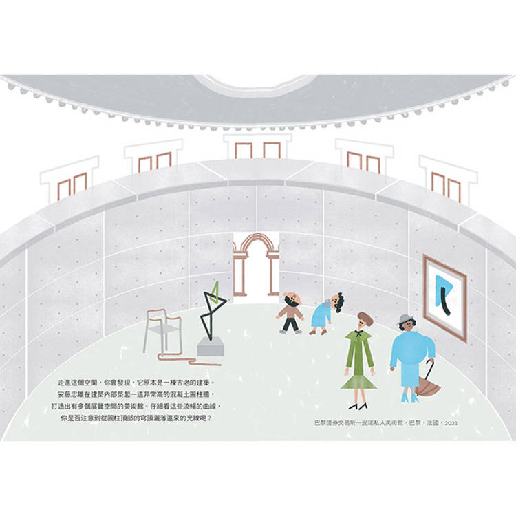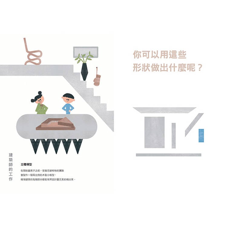 ☆入選波隆那Amazing 100 圖畫書☆ 從夢想出發,抵達全世界 這本書,是安藤忠雄為孩子打開的一扇門 什麼樣的房子可以讓風穿過、光流動、自然走進來? 安藤忠雄用混凝土蓋出與自然共生的空間, 也用最純粹的幾何形狀,改變了我們對建築的想像。 從一張紙、一道光、一個想像開始, 我們都是建築師。 你是否曾經注意過,光線是怎麼透過窗戶照進來的? 你是否發現,它會隨著一天當中的時間而變化? 你能不能從一棟建築物的裡面,看見天空? 這些問題,正是本書圍繞的核心。透過日本建築大師安藤忠雄的作品,引導孩子思考空間、光線與形狀。這些建築靈感來自他的旅行、他對自然的熱愛,以及他對人與空間之間關係的細膩觀察。這是一場以好奇為起點的建築之旅,邀請孩子用眼睛觀看、用雙手創造,發現建築原來可以這麼有趣。 遊戲 X 建築 X 繪本 這是一本所有人可以輕鬆進入的建築入門書,從圓形、三角形到光線與空氣的流動,書中以簡明而充滿美感的方式,引導我們認識空間、材質、比例與感受;搭配 200 張可重複使用的貼紙與互動頁面,更讓所有人都能成為創造者,親手拼出自己的建築夢。 在這本書裡,我們不只是在閱讀,更是在思考、觀察、創造。 本書特色 ★孩子的好奇是最好的建築起點★ 這本書以孩子能理解的語言與圖像出發,將建築從專業轉化為每個孩子都能參與的日常體驗。透過「風能進來嗎?」「光從哪裡照進來?」等開放式提問,引導孩子觀察生活中的空間、光線與結構,從感受中學習,從好奇中思考。搭配貼紙與創作活動,讓孩子在動手拼貼與畫圖中提出自己的解答。閱讀不只是認識建築,更是發現世界的一種方式。 ★從圖形到工地,體驗建築的全過程★ 這本書讓孩子不只看見建築成果,也理解它如何誕生。從畫設計圖、製作模型到實地監工,每一個步驟都透過清楚圖示與簡單說明,幫助孩子了解建築師的工作流程。而搭配幾何貼紙與建築圖像,更讓孩子在拼貼與創作中認識形狀與結構的關係,進一步連結數學比例、美感配置與空間邏輯。閱讀這本書,就像進行一場跨藝術與科學的創造訓練,讓孩子學會從想像到實現的完整歷程。 ★跨國建築旅行啟發世界觀★ 書中收錄來自日本、美國、法國、韓國等地的經典建築,讓孩子一頁頁翻閱世界,理解每個城市與文化對建築的不同語言與表達。這不只是一本建築書,更是一次縮小比例的建築旅行,從紙上出發,拓展孩子的眼界與感知。 ★強調與自然共生的空間思維★ 安藤忠雄的建築設計強調光、風、水與空間的互動。本書不只介紹他的理念,更透過具體畫面與問題,讓孩子思考「建築不是隔絕自然,而是邀請自然進來」。這樣的觀念,也能啟發孩子從小建立對環境與空間的敏感度。 ★從閱讀到創作,打造屬於自己的建築夢★ 這本書不只是閱讀,更是一場動手做的建築創作旅程。附有200張可重複使用的低黏性貼紙與收納袋,孩子可以自由拼貼建築造型、模擬設計過程,甚至打造自己的夢想空間。書末設計更開放創作空間,鼓勵孩子思考要蓋什麼、蓋在哪裡,畫出屬於自己的設計圖。從翻頁觀察、提問思考,到動手實作,孩子在玩中學、在創造中建立自信,真正成為自己心中的建築師。