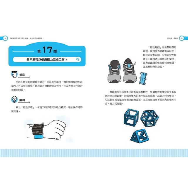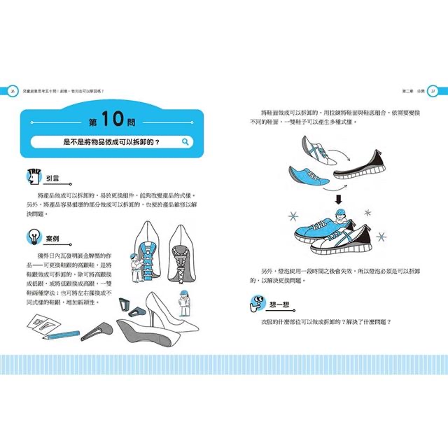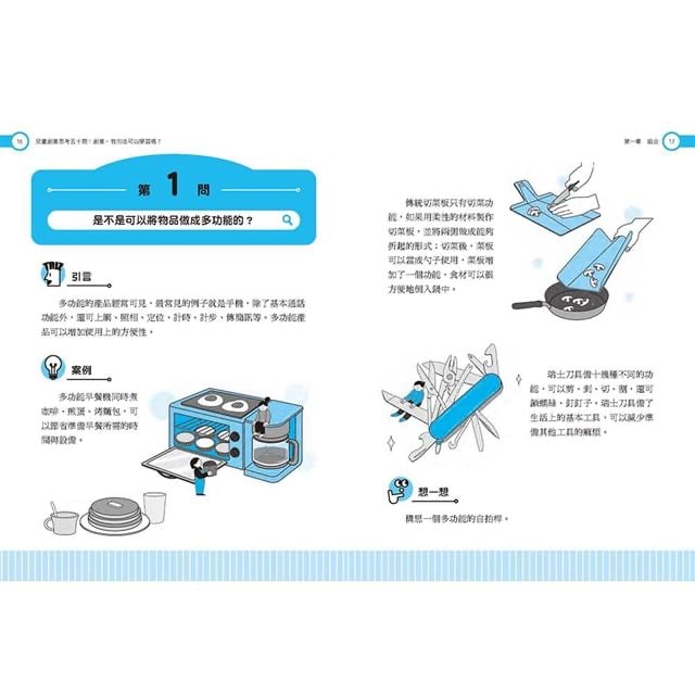 💡創意蘊藏機會,機會是留給有創意的人💡 餐廳裡的筷子🥢在使用時感覺不衛生,如何解決? 拉鍊有時會夾住衣服👚,如何解決? 教室裡的課桌椅對某些學生來說太矮,如何解決?…… 🧐發明新事物首先要找出「問題」❓,並且不斷思考🧠「誰需要解決這個問題」?只要能滿足大眾的需求與期待,任何具有市場性的新事物,都可以是創新。而創意的產生是靈機一動呢?還是有方法可以學習的呢? 屢獲國際發明大獎的沙永傑教授,將萃思(TRIZ)發明原則改寫成適合兒童學習的五十問,並輔以國內外創新案例,說明如何運用「聯想」構思解決問題的創意。閱讀本書可以培養孩童與青少年創意思考的能力與創意發想的興趣。 📚【本書關鍵字】📚 創意思考、萃思(TRIZ)、應用性創新、發明原則、發掘問題、解決問題 📝本書特色 ✅本書收錄啟發孩童創意思考的萃思(TRIZ)學原則 萃思(TRIZ)的意思是「發明性問題解決理論」,本書介紹其四十項發明原則中適合兒童閱讀的原則,引導小朋友運用萃思學,在生活中發現問題,發揮創意思考,進而解決問題。 ✅以「問句式教學法」撰寫,輔以翔實又生動的圖解,利於孩童理解學習 本書將發明原則改寫成問句的形式,並以生活中的實例佐證該問項的可行性與有效性;此外還搭配生動的插圖,使學童更易於學習與理解。 ✅打破創新恐懼症,培養孩童解決問題的態度與能力 作者於五十問中每一問都有拋出一個問題,讓讀者自由去發想;書末也附有解答,提供讀者參考。讓讀者養成創意思考的習慣,只要定位明確,能力所及,都可以創造價值,造福社會。