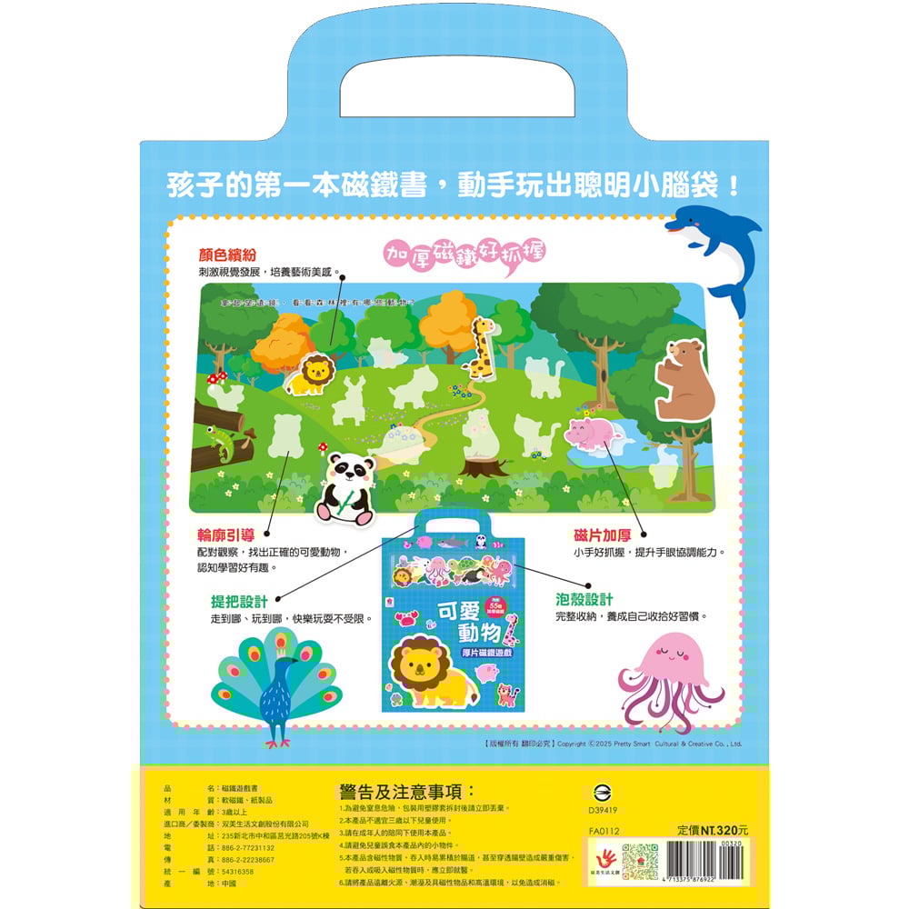 孩子的第一本🧲磁鐵書 🤗動手玩出聰明小腦袋! 提把設計,走到哪,玩到哪。 55個加厚🧲磁鐵,小手好抓握, 搭配遊戲場景,在遊戲中學習! 獅子🦁長頸鹿🦒海豚🐬螃蟹🦀…… 你認識的動物有那些呢? 快在遊戲中認識可愛的動物吧! 邊學邊玩真有趣! ❤️貼心泡殼設計,完整收納好方便,養成孩子自己收拾好習慣。 ✨本書特色✨ ✅加厚磁鐵:小手好拿取,提升手眼協調能力。 ✅認知啟蒙:圖像認知,加深記憶,輕鬆認識可愛動物。 ✅輪廓引導:配對觀察,找出正確圖案磁鐵,認知學習好有趣。 ✅提把設計:走到那玩到那,快樂玩耍不受限。 ✅泡殼設計:完整收納,養成自己收拾好習慣。 ✅顏色繽紛:刺激視覺發展,培養藝術美感。