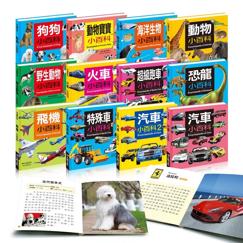 🔥小百科系列(12款)🔥 1️⃣汽車小百科2️⃣汽車小百科(1) 3️⃣超級跑車小百科4️⃣飛機小百科 5️⃣特殊車小百科6️⃣火車小百科 7️⃣動物小百科8️⃣恐龍小百科 9️⃣狗狗小百科 1️⃣0️⃣野生動物小百科 1️⃣1️⃣海洋生物小百科 1️⃣2️⃣動物寶寶小百科 .小百科以真實擬真圖片呈現,內容簡單易懂👍🏻 .簡短文字及注音輔助,孩子能試著閱讀理解🗣️ .質感扎實好翻閱,孩子出門帶一本隨時查閱🔍 🎥影片連結 https://youtu.be/pmGJCoqrQ1Q 🚗汽車小百科 ˙你知道路上汽車的品牌的標誌嗎? ˙福特、豐田、賓士、奧迪、寶馬.. ˙汽車小百科精選約60種各式車款 ˙介紹各款車型的標誌創建由來資訊 🚙汽車小百科(2) ˙介紹跑車、房車、休旅車、掀背車等四大類車型 ˙62款汽車,幫助孩子清楚區分與了解各車款特色 ˙每種車款均標示國別、車型、排氣量、動力資訊 ˙書末汽車品牌圖像玩猜猜看遊戲,增加品牌記憶 🏎️超級跑車小百科 ˙54款跑車及品牌,包括十大超級跑車和各種超跑 ˙全頁彩色照片介紹,真實了解車款的樣貌與特徵 ˙標示國別、動力、極速與加速到 100公里的時間 ˙書末汽車品牌圖像玩猜猜看遊戲,增加品牌記憶 ✈️飛機小百科 ˙60多種造型奇特、酷炫的飛機,戰鬥機、轟炸機 ˙攻擊機、直升機、輔助軍機、民用飛機做為分類 ˙戰鬥機、轟炸機、攻擊機有什麼不同? ˙直升機、預警機、偵察機有哪些功能? ˙哪一種飛機被稱做為「國際戰鬥機」? ˙有「飛行戰車」稱號的是哪一種飛機? 🛺特殊車小百科 ˙60種特殊車款,警消清掃車、工程車、貨運車類 ˙堆高車、軍用車等,詳述各種車種的用途與特色 ˙全頁彩色照片介紹,真實了解車款的樣貌與特徵 ˙標示用途與相關的配備或噸位等資訊,強化認知 ˙書末玩猜猜看遊戲,增加孩子對車子外型的記憶 🚇火車小百科 ˙60多種火車,亞洲、歐洲、美洲、非洲、大洋洲 ˙世界上時速最快的蒸汽火車是哪一種? ˙去哪裡可以搭乘可愛的麵包超人列車? ˙哪種火車不是在地面行駛而是在空中? ˙為什麼有些火車轉彎時不用減慢速度? 🦓動物小百科 ˙犀牛為什麼喜歡在泥巴裡打滾? ˙變色龍為什麼會隨環境改變膚色? ˙小丑魚喜歡和什麼動物生活在一起? ˙啄木鳥為什麼要一直啄樹木? ˙60種動物,詳細介紹牠們的特徵與生活習性 🦖恐龍小百科 ˙什麼恐龍能在空中飛? ˙什麼恐龍的體型最大? ˙哪一種恐龍最凶狠? ˙哪一種恐龍有好幾百顆牙齒? ˙60種恐龍,介紹恐龍生活的年代及生活習性 🐶狗狗小百科 ˙可愛,玩賞犬、畜牧犬、工作犬、狩獵犬做分類 ˙最聰明的狗又是哪一隻? ˙你知道「史努比」是根據哪一種狗創造出來的嗎? ˙卡通、電影中的那些狗明星,分別是哪一種狗呢? ˙哪些狗不但是人類的好朋友,更是人類的好幫手? 🦊野生動物小百科 ˙臭鼬為什麼會噴發臭氣? ˙鬣狗和狗有什麼不一樣? ˙狐獴的黑眼圈有什麼特別的功用? ˙犛牛怎麼抵抗寒冷的氣候? ˙60多種野生動物,詳細介紹牠們的特徵與生活習性 🐳海洋生物小百科 ˙哺乳、硬骨魚、軟骨魚、海洋爬蟲、無脊椎動物區分 ˙全頁彩色照片介紹,真實了解海洋生物的樣貌與特徵 ˙特徵、習性、棲息環境、食物等,特殊行為加強說明 ˙書末讓孩子玩猜猜看的遊戲,增加對海洋生物的記憶 🐮動物寶寶小百科 ˙動物寶寶的模樣和長大後一樣嗎? ˙動物媽媽們如何保護自己的寶寶呢? ˙寵物和農場、森林、草原、極地、水中動物做分類 🌟規格:144頁