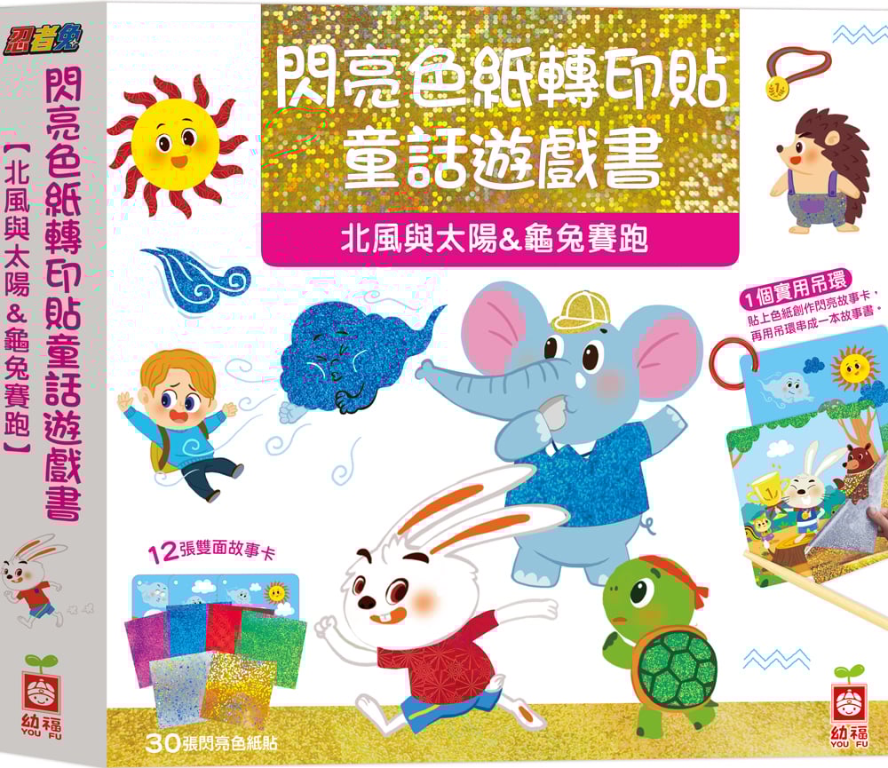 🔸預購貨品🔸忍者兔閃亮色紙轉印貼童話遊戲書【北風與太陽&龜兔賽跑】