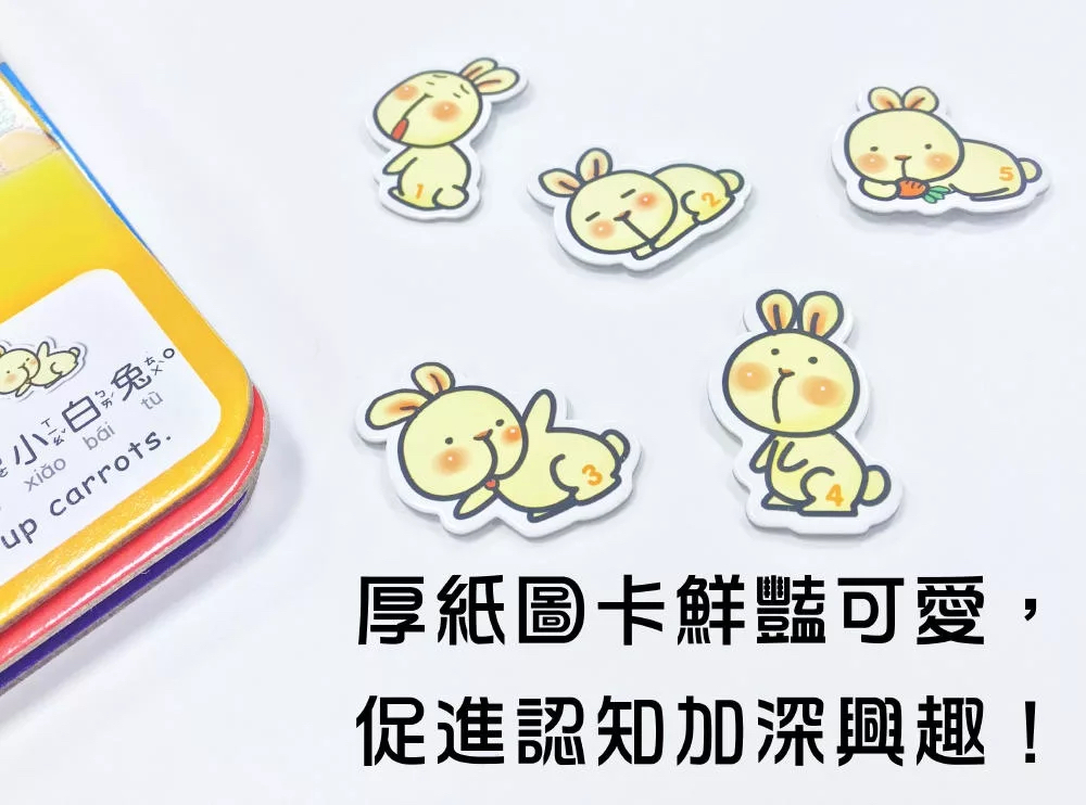 🌈忍者兔 Baby’s 認知黏貼遊戲書❤️【129張重複撕貼魔鬼氈圖卡、4本遊戲書,開心認識動物、交通工具、形狀顏色及數字】 📚一套提升智能的黏貼遊戲書! 厚紙魔鬼氈貼,重複黏貼超好玩! 在幼兒啟蒙階段,最需要一套活潑、有動態感、品質精良且寓教於樂的學習工具,幫助父母🆙提升孩子智能。《忍者兔Baby’s認知黏貼遊戲書》內容完整涵蓋幼兒生活中必學事物,圖片精彩生動,是符合孩子學習需求的必備教具。👍 希望孩子👧🏻👦🏻主動學習,就要讓他們先愛上學習😍。本產品結合了黏貼遊戲及閱讀認知兩大功能,不僅滿足孩子需要的樂趣,更透過反覆遊戲學會許多生活情境中實用的詞語,同時增加中文、英文的語文能力。而且,除了能夠在愉快的親子互動時間閱讀外,獨立學習也沒有問題! 四大生活化主題 🔹「動物世界」:除了天上還有地上的動物,多樣化的海洋生物也包括在內! 🔹「交通工具」:除了常見的公車、腳踏車和汽車,還有各行各業會使用的警車、貨車、挖土機,甚至還有飛機和帆船呢! 🔹「形狀顏色」:以許多生活中常見的事物為例,這些在不同情境下會看見或使用的物品,分別是什麼顏色和形狀呢? 🔹「數字123」:透過豐富的場景(森林、田野、海洋、街道等),以及可愛的圖卡(昆蟲、飛鳥、船隻、車子等),讓孩子藉由這些具體的物件來練習數數! 👧🏻🧒🏻孩子們可以藉由閱讀書上的敘述來找出對應的圖卡,練習認知事物和學習詞語;也可以發揮想像力、動動小手👐🏻,把各式各樣的圖卡黏貼在喜歡的位置上,手腦並用、愉快學習! 🔖本書特色 ✅簡單又直觀的遊戲方式,讓孩子能輕鬆獨自閱讀,提升專注力。 ✅收錄生活中常用的中、英文語詞,適合幼兒快樂認知學習。 ✅魔鬼氈厚紙卡可重複撕貼,發揮想像力,反覆練習。 ✅親子共讀時可玩配對或問答遊戲,提高學習興趣及加深印象。