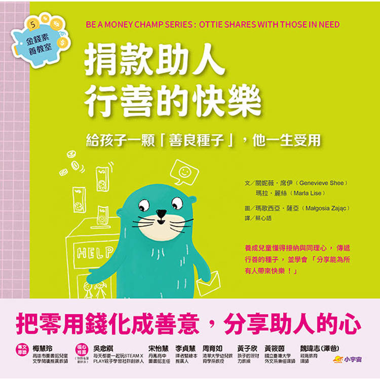 在《金錢素養教室》系列前四冊中,孩子已探索了「錢從哪裡來」、「怎麼花」、「不能花光」、「買不買的判斷」。《捐款助人 行善的快樂》則帶領孩子進入金錢素養的另一個重要層面,分享與助人。不只是讓孩子知道「零用錢可以助人」,更是要讓孩子理解,金錢不只是買東西的工具,它也可以透過分享帶來幸福、連結與溫暖。