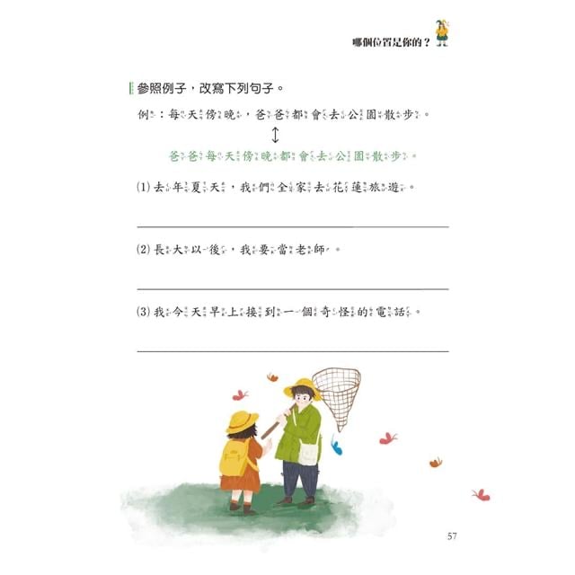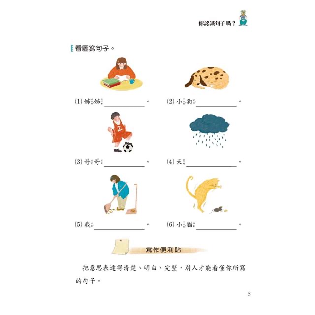 ★ 給小學低中年級孩子的第一本啟蒙寫作素養書! 句子是寫作的基礎,掌握句子的變化,是邁向寫作的第一步! 一起來做做句子柔軟操, 先解決句子硬邦邦的困擾, 再和殘缺的病句說再見。 把關聯句連接的鎖鏈接上, 再學學怎麼在句子伸展臺, 舞出動人的修辭句。 柔軟的句子就這樣打造好了, 你的寫作能力也步上了更高的樓層。 本書特色 ◎ 循序漸進淺顯易懂,輕鬆學習零負擔。 ◎ 拆解多元句型,全盤掌握句子基本結構。 ◎ 從基礎、進階到活用,全面提升句子寫作技巧。 ◎ 即時仿寫、看圖寫短文,在家自學也能上手。 ◎ 生活化創意練習、情境插圖,孩子想像力更能有效發揮。