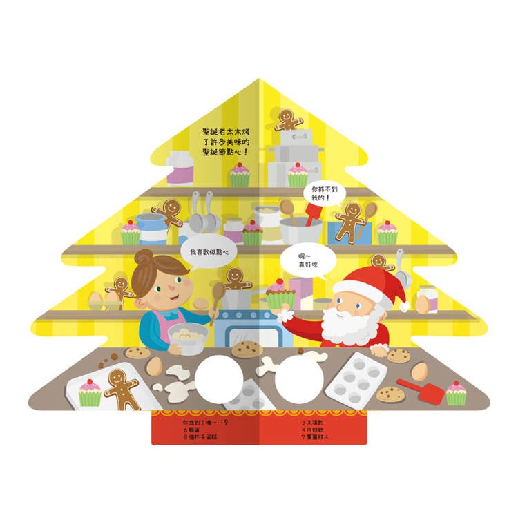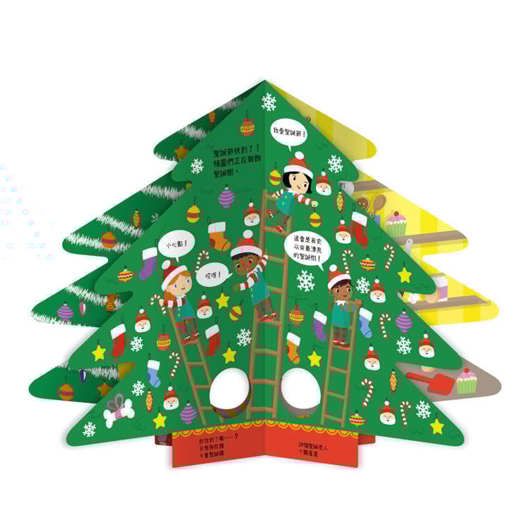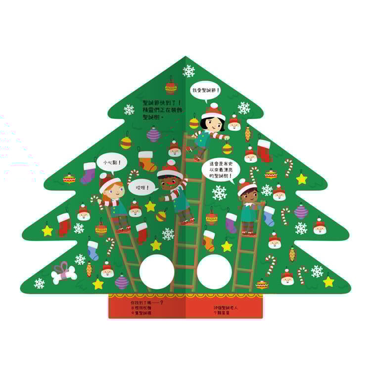 ♫ 這是一本書,也是一棵聖誕樹 ♫ ★兼具5種功能的聖誕樹造型音樂書★ ★聖誕故事 X 尋找遊戲 X 數字學習 X 立體聖誕樹擺飾 X 高品質音樂★ ~伴著聖誕鈴聲🔔一起度過溫馨的聖誕節時光~ 「叮叮噹~叮叮噹~鈴聲多響亮~♫」 聖誕節🎄悄悄地來臨,家家戶戶在樹上掛上漂亮的裝飾🎍。 聖誕老太太👵🏻烤了香噴噴的餅乾🍪,準備分送給大家。 而在遙遠的聖誕老人工作坊裡,有一群精靈正手忙腳亂地製作玩具, 他們等不及要把這些玩具送到小朋友手上了! 展開這棵聖誕樹,和馴鹿、貓頭鷹、北極熊一起聽著聖誕鈴聲,共度溫馨的聖誕節! 🎉本書特色🎉 ★打開就是一棵聖誕樹,童趣又復古 攤開書頁,黏上魔鬼氈,就變成獨一無二的聖誕樹擺飾! 本書封面採霧面與燙金設計,書脊以紅布輔以燙金,插畫活潑可愛,全書色彩豐富、柔和不眩光,童趣風搭配低調的華麗感,幫助孩子從小培養審美與藝術氣息。A4大小的尺寸,擺放客廳或房間剛剛好,是聖誕佳節獨特的質感擺飾! ★高品質音效,經典聖誕音樂《聖誕鈴聲》 「叮叮噹~叮叮噹~」按下按鈕,立即流瀉出播放經典聖誕音曲目《聖誕鈴聲》,經典曲目更添溫馨聖誕氣氛! ★簡單清新的聖誕故事,認識聖誕節角色與元素 閱讀簡單又清新的聖誕小故事,看看聖誕老人、聖誕老太太、精靈、北極熊們在忙些什麼呢? ★找找小遊戲互動閱讀,親子同樂更溫馨 每一頁還有找找看小遊戲,尋找拐杖糖、聖誕襪、杯子蛋糕、薑餅人……適合親子一起尋找,共度快樂的時光。 ★輕鬆認識數字,啟蒙幼兒數感 找找看遊戲中融入 1到10的數字元素,幼兒可從中培養數感,自然而然發展數字概念,適合作為幼兒啟蒙教育的材料。 ★硬頁紙板加圓角,堅固又安全★ 書頁為硬頁紙板,便於幼兒抓握與翻閱;邊緣皆採圓形角設計,不怕割傷手,耐用又安全。