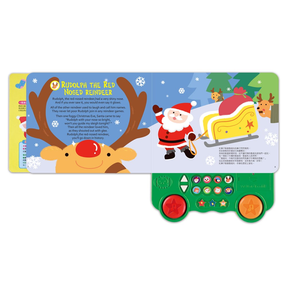 🎄Merry Christmas!小朋友,一起跟FOOD超人來歡唱🎤聖誕歌謠吧!🎶8首好聽的聖誕歌謠、3種鈴鼓聲🥁,給孩子最棒的聖誕禮物!🎁 🎵精選8首耳熟能詳的聖誕歌謠,以標準美式英文發音,讓孩子歡唱學英文。內含3種鈴鼓聲🥁,並附上左右雙鼓,讓孩子敲敲打打,感受歡樂的聖誕氣氛。精美又鮮豔活潑的插圖帶給孩子豐富視覺享受,並附上中文翻譯,培養英文聽力與中文閱讀習慣,是給孩子最棒的聖誕禮物! ✅標準英文發音 8首耳熟能詳的聖誕歌謠,以最標準的美式英文發音錄製,讓孩子哼哼唱唱,輕鬆學英文。 ✅有趣左右雙鼓 有趣的左右雙鼓,拍打雙鼓時會同時發出音效和燈光,且內含3種鈴鼓聲,讓孩子敲敲打打,感受歡樂聖誕氣氛。 ✅活潑可愛插圖 精緻可愛的插圖繪本,大字體英文歌詞,且附上中文翻譯歌詞,給孩子豐富的視覺享受! ✅促進親子關係 家長可以陪伴孩子一起玩耍、歡唱,增進親子親密互動,是送給寶貝最棒的聖誕禮物歌謠繪本。。 ★輕鬆學習英文 朗朗上口的旋律以及簡單的歌詞,以標準美式英文發音,讓孩子歡唱聖誕歌謠,輕鬆學英文。 ★刺激視覺發展 在遊戲過程中會發出燈光與音效,活潑鮮艷的插畫也能刺激孩子的視覺發展。 ★提升肌肉發展 在敲敲打打的過程中幫助孩子訓練小肌肉,提升肌肉發展。 ★強化親子互動