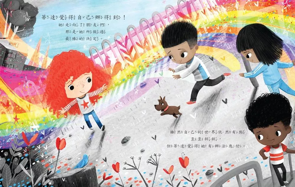 遇到困難、不如己意時,你會怎麼辦呢? 跟著蒂達試試看,不要放棄,擁抱變化! 「簡潔鮮明的圖畫,細膩溫柔的文字,在有趣的故事中傳遞面對困境的力量。」——《學校圖書館連線》(School Library Connection) 「圖畫從灰階到彩色,細膩的呈現故事主角面對挫折時的心境變化。這本繪本替孩子打開了學習情緒的入口」──《科克斯書評》(Kirkus Reviews) 蒂達的生活裡,有朋友、玩具有伴,一切都是她喜歡的樣子, 但是有一天,她的世界卻出現天翻地覆的變化, 所有的東西都變成上下顛倒的樣子。 這讓蒂達做任何事情都相當吃力, 嘗試了幾次、吃了一些苦頭後,她決定放棄,拒絕再做任何努力。 直到有一天,她看到一隻躺在地上、四腳朝天的瓢蟲, 無法起身的瓢蟲不斷的揮動著牠的小腳,不斷嘗試後,終於成功展翅飛起。 這讓蒂達有了新的啟發,開始擁抱現況,並願意嘗試挑戰。 ✦✧✦✧✦✧✦✧✦✧✦✦✧✦✧✦✧✦✧✦✧✦✦✧✦✧✦✧✦✧✦✧✦ ❤ SEL情緒學習繪本 讓孩子從小建立社會情緒學習(EL, Social Emotional Learning),認識自己的情緒,學會傾聽自我,並建立心理韌性。 ❤遇到困難,你會選擇逃避還是再試試看呢? 故事裡的蒂達遇到困難先選擇了放棄,卻依舊不開心,當她勇敢嘗試時,一切變得有趣,而且也更有信心面對其他的挑戰了! 【適讀年齡】 ▲ 適讀年齡:2~6歲親子共讀;6歲以上自己閱讀。 ▲ 文字附注音,適合親子共讀,也適合孩子自己讀。