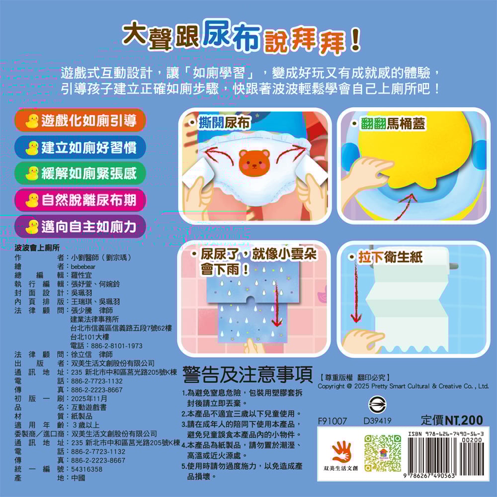 加上多種驚喜小機關😍不僅讓閱讀變得更有趣,也能激發孩子主動觀察尿意與便意、學習如廁技巧、健康知識、衛生禮儀等動機。