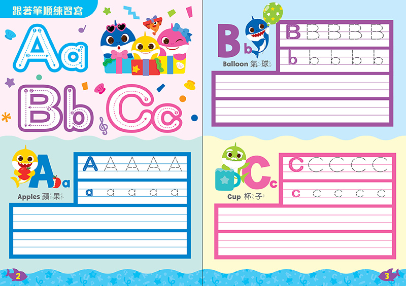 ★以碰碰狐、鯊魚寶寶為主題設計,陪小朋友一起快樂練習! ◆先以運筆練習暖身,讓孩子正式書寫時更好上手。 ◆跟著筆順的指示,沿虛線逐一紮實地從A寫到Z。