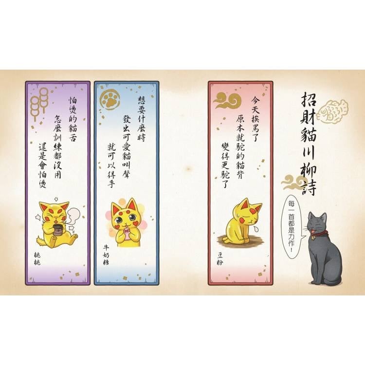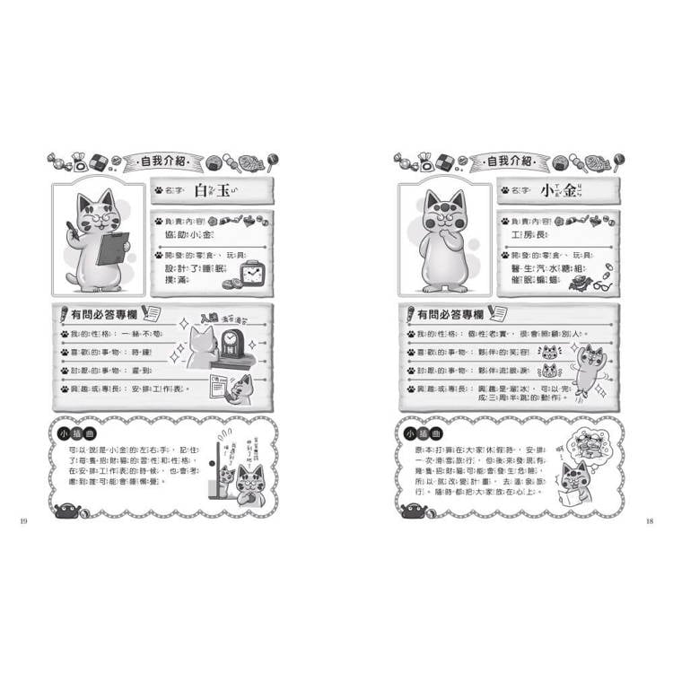 神奇柑仔店系列:招財貓的每一天 內容簡介 【神奇柑仔店】最神祕的零食工房首度大公開! 兒童版解憂雜貨店 全系列發行量突破100萬冊 蟬聯各大通路百大暢銷書、日本小學生最愛百大童書 50篇超可愛日常漫畫X3篇超精采短篇故事, 33隻招財貓圖鑑X11首貓言貓語彩色詩箋, 帶你一窺錢天堂和招財貓歡樂又療癒的每一天! ◎詳細內容 歡迎來到錢天堂最神祕的地下零食工房! 這裡是金色招財貓的工作室,更是神奇零食和玩具的製造所! 從幸運寶物誕生的金色招財貓,不僅是紅子老闆娘的好幫手, 還能發揮無限的想像力與創意,滿足客人的所有心願! 想知道招財貓們是如何設計零食? 每隻貓的性格、專長與負責的工作內容是什麼? 紅子老闆娘和招財貓的日常生活又會發生哪些有趣的事呢? 集結超可愛的漫畫與圖鑑,還有許多不為人知的小故事, 帶你一窺錢天堂與招財貓充滿驚奇的每一天!