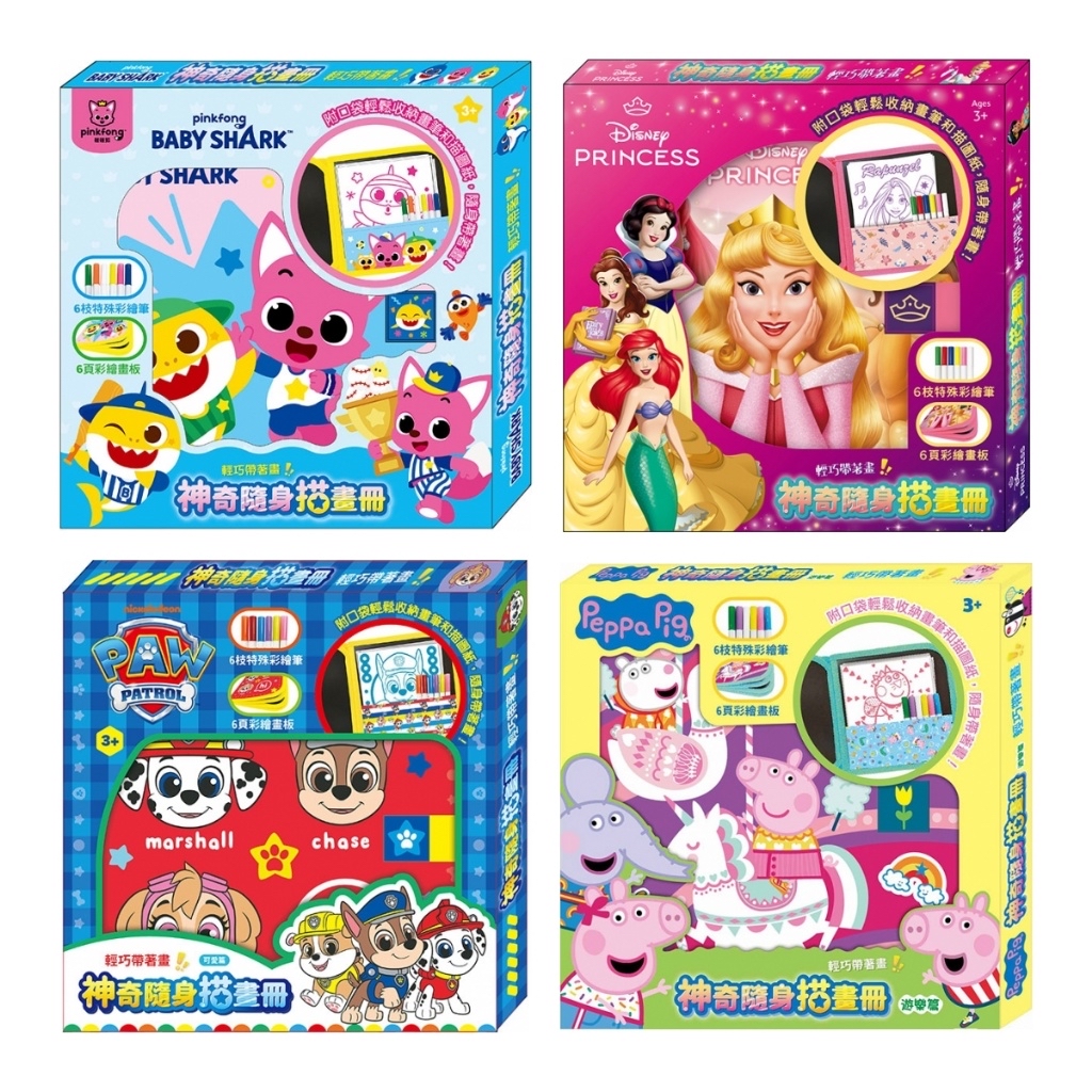 🌈神奇隨身描畫冊🎨 📖畫冊附口袋輕鬆收納畫筆🖌️和描圖紙,還有魔鬼氈包覆畫冊👍🏻 🎨畫板易上色,用濕紙巾💦擦拭,重複描重複畫。透明畫板搭配描圖紙,描繪出想要的圖案。 特殊彩繪筆環保水💧溶配方,不掉粉,描畫流暢順滑,色彩清晰明亮。 ❤️內容物:含6枝特殊彩繪筆、6頁彩繪畫板(其中2頁為透明畫板)和8張各式主角描繪塗鴉紙。 📏尺寸 :21.8×21.5×2 cm(外盒)