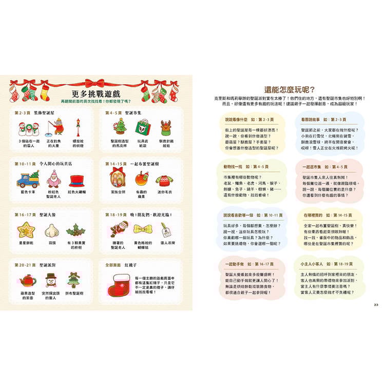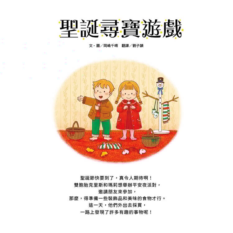 【🎊 #新書上市 】 《聖誕尋寶遊戲(比賽誰先找到就大喊:「我發現了!」)》挑戰眼力精采上市🎉 叮叮噹!叮叮噹!聖誕鈴聲響叮噹! 看著賣場裡大大大小、各種裝飾的聖誕樹🎄, 各式各樣閃亮亮的燈飾、金銀鈴鐺, 雪花飄個不停的的水晶雪球🔮…… 再聽到耳邊傳來聖誕歌曲, 你是不是也感受到聖誕節的腳步近了呢? 聖誕節總是讓人感到溫馨、快樂, 尤其全家一起採買、布置,為家人、親朋準備小禮物🎁, 這樣溫暖的互動與心意,一點一滴的傳達,最後在聖誕節綻放。 《#聖誕尋寶遊戲》便是這樣一本帶讀者體會聖誕節採買樂趣, 並結合尋寶遊戲的繪本。 書中每個地方都充滿濃濃的聖誕味, 從主角走出家門開始,會經過雪人⛄️屋、紅靴屋, 其他還有馴鹿屋、手套屋、薑餅人屋等, 而兔子🐰正在隔壁街上扛著聖誕樹🎄,馴鹿在滾雪球,雪人⛄️在烤火…… 還有三戶人家煙囪裡有聖誕老人探出頭來, 得請你幫忙找一找呢! 到了市集, 他們看到猴小弟🐵正在等灑上棉花糖的熱可可, 松鼠姐妹花選中了一款聖誕樹🎄和小熊🧸的水晶雪球🔮, 浣熊夫婦🦝正在聽山羊爺爺介紹每一株聖誕樹🎄, 啊!每一個攤位都好吸引人, 要先逛哪一攤呢? 那就先挑個聖誕花圈吧! 要選上面有小屋子和蝴蝶結緞帶🎀的? 還是愛心形狀上面有白色鴿子的? 還有飾品小屋裡的吊飾,也每個都好可愛! 就這樣,他們買了聖誕花圈、聖誕吊飾, 又去了蠟燭店、服飾店、玩具店、點心小鋪、蛋糕🍰店, 每個地方都讓他們眼睛發亮,並陷入選擇困難, 因為每個東西都好特別好漂亮, 每種食物看起來都精緻又美味啊! 書中主角採買的體驗,是不是很吸引人呢? 試試帶孩子和家人上街購物感受一下吧! 美麗的商品會讓你們賞心悅目,心情愉悅, 但重要的是全家一起參與,一起討論,一起決定的過程, 這樣的交流將讓你們的心緊緊相繫, 孩子開心,家人感情更甜蜜💕。 現在,就跟著主角一路採買聖誕用品, 把聖誕節要布置的、要穿的、要玩的、要吃的都體會一遍吧! *************************************************