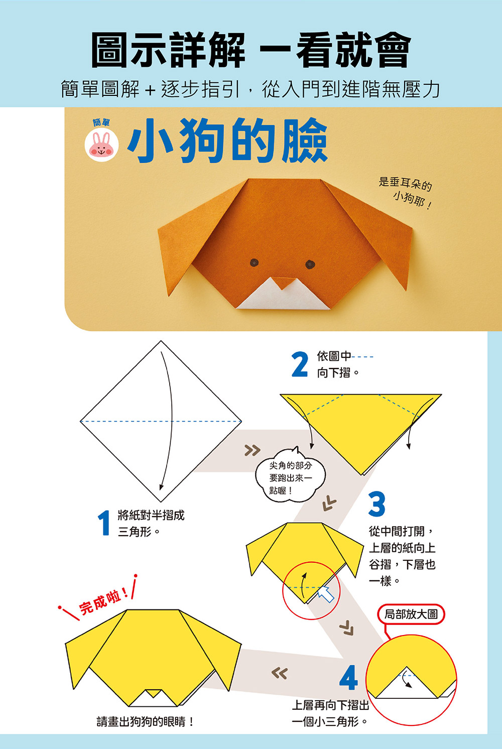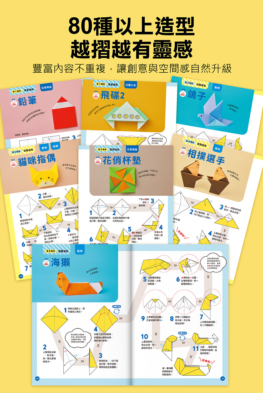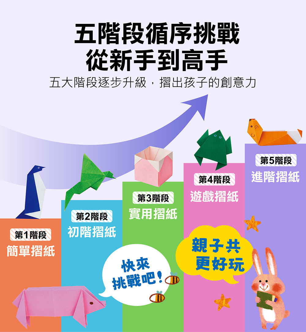 🌈完全沒有摺紙基礎也沒關係,不需要剪刀和膠水,用手就能完成的第一本摺紙書😍 摺紙對於孩子的腦力🧠發展有多種正面影響,蘊含了豐富的教育價值,包含空間概念、視覺思維、專注力、耐心程度、持久力等,也需要利用手眼之間的協調與肌肉精細操作,配合大腦指令,強化孩子的腦部發育,同時也能培養創意與藝術美感‼️ 🧠《頭腦發育!摺紙書 》專為兒童手工藝術與益智摺紙領域開發,內含五種階段摺紙,80種以上的摺紙內容,並附有難度等級,循序漸進地依照摺紙步驟就能完成,適合家長和小朋友一起共玩,在摺紙的過程中不只是學習摺紙技巧,同時也能激發創意與空間協調能力 ✅五階段摺紙遊戲 簡單摺紙、初階摺紙、實用摺紙、遊戲摺紙、進階摺紙,共五個階段。 ✅難易度標示 分為簡單、普通、困難三種難易度標示,可依難度選擇摺紙目標。 ✅摺紙步驟簡單易懂 簡單的圖示步驟,按照步驟循序漸進摺紙。 ✅促進大腦加速發展 陪伴孩子動手、動腦,促進大腦發育。 ✅全彩插圖吸引目光 全彩插圖、詳細的步驟,容易視覺化理解。 ★學會摺紙各種步驟 學習基本摺法、各種不同的摺紙要點。 ★強化頭腦發育 全面提升孩子的腦力、理解力、創造力、空間概念等。 ★促進親子溝通 陪伴孩子一起摺紙,遇到挫折時教導不要灰心,從頭再試一次,就算失敗也沒關係,從中培養孩子建立自信與受挫能力。 ★激發創意與可變化性 學會摺紙後,也可嘗試自己使用不同的摺法,變化不同造型,激發創意。 ★實用摺紙收藏 摺好的成品也可以做為收藏,增加回憶,若用比較堅硬的摺紙或特殊材質,亦可變成實用的杯子等物品。