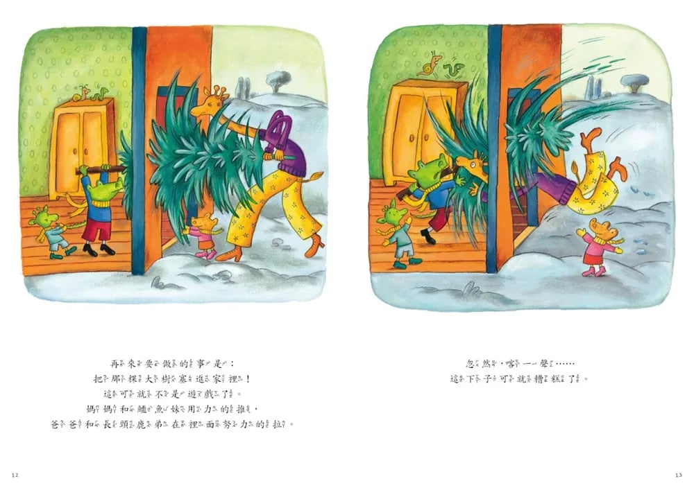 聖誕樹折了一半、薑餅人做得太大、甚至還滾來一棵大雪球……