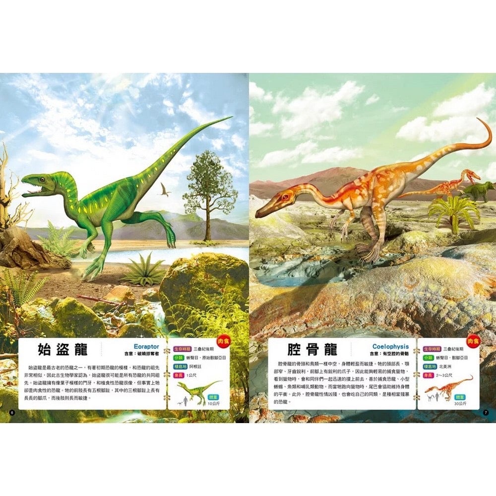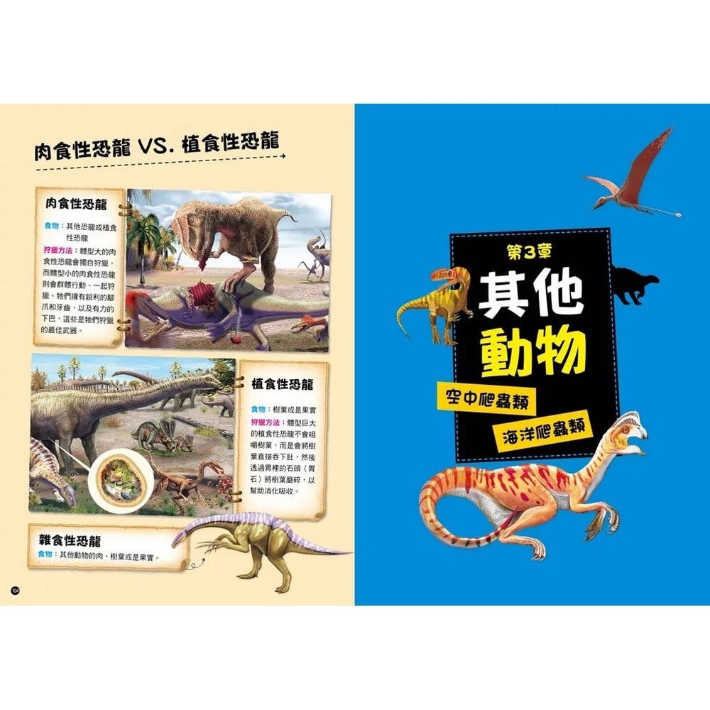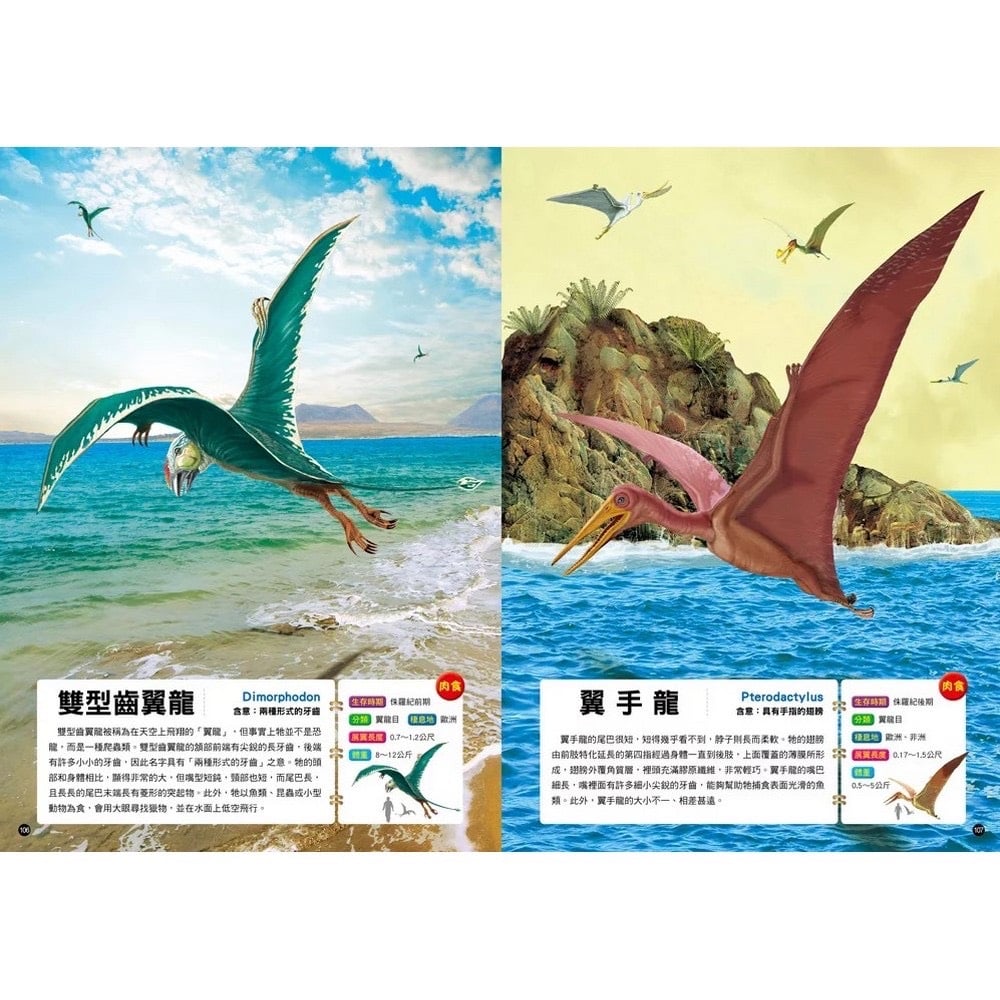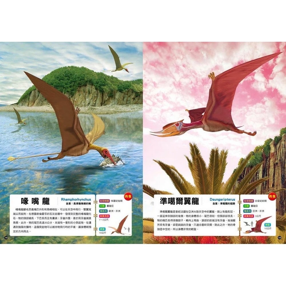 🦖 101超震撼恐龍🦖 🎥影片介紹:https://youtu.be/kNw3q75eS_M 😍精選 100隻🦖恐龍,依肉食、植食性與爬蟲類等方式區分 📄特徵說明、介紹,及生存的時期、分類與棲息地等資料👍🏻 🦖恐龍模樣均以恐龍化石和多樣的化石分析資料作為基礎 💻再以電腦繪圖完成擬真圖像,且依古生物環境特徵還原 👀塑造逼真的恐龍生活樣貌,能滿足孩子的好奇與求知欲 ✍🏻恐龍資料包括身長、體重或展翼長度,以人型比例對照 🔆頁數:140頁