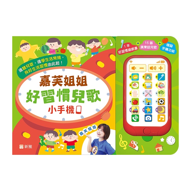 ✨玩具手機 + 遊戲書,邊聽兒歌,邊學知識,建立良好的作息及生活習慣‼️ 🗣️結合廣東話兒歌及玩具的圖書,既是玩具,也是有益心智的圖書📖 🔥收錄人氣兒歌🔥創作者嘉芙姐姐的廣東話兒歌🎶,其作品常用於本地幼稚園及服務幼兒的社福機構,並 Youtube 頻道亦是幼兒常看的。(Youtube 113Kfollowers,尚有其他平台,如 Facebook、Spotify 等)。 ☑️市場上少有發聲玩具培養小朋友的良好生活習慣,既是孩子的玩具,也是父母的育兒工具。 🎵收錄 15 首嘉芙姐姐有關一天生活的兒歌🎶🎶🎶,歌曲次序以幼兒一天的生活來編排歌曲,分成早午晚,讓孩子建立良好的作息及生活習慣。父母也可利用這部「育兒恩物」小手機,提示幼兒適時洗手💦吃飯🍚上廁所🚽 🎶歌曲列表🎶 上午歌單 太陽伯伯 跟我做早操 刷牙洗面歌(新歌) 最愛三餐 衣服歌(新歌) 去廁所歌(新歌) 下午歌單 我愛餐具 洗洗手 我愛遊樂場 球類活動好多種 一星期七日 蔬菜篇 水果歌 晚上歌單 收拾玩具歌(新歌) 數星星 入夜了(新歌)