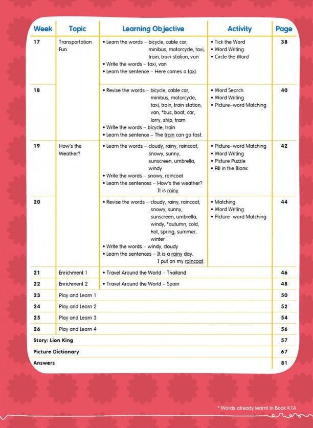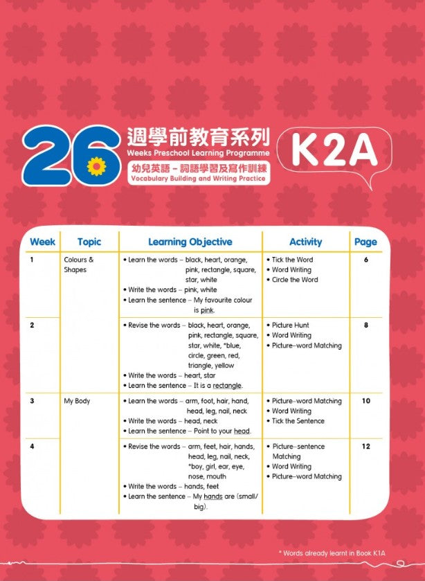 26週學前教育系列:幼兒英語 - 詞語學習及寫作訓練 K2A