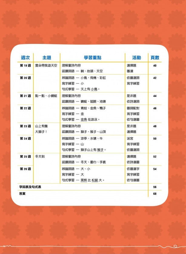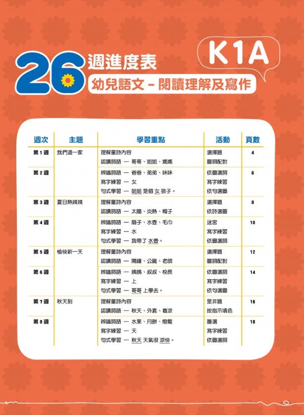 26週學前教育系列 - 幼兒語文 - 閱讀理解及寫作 K1A
