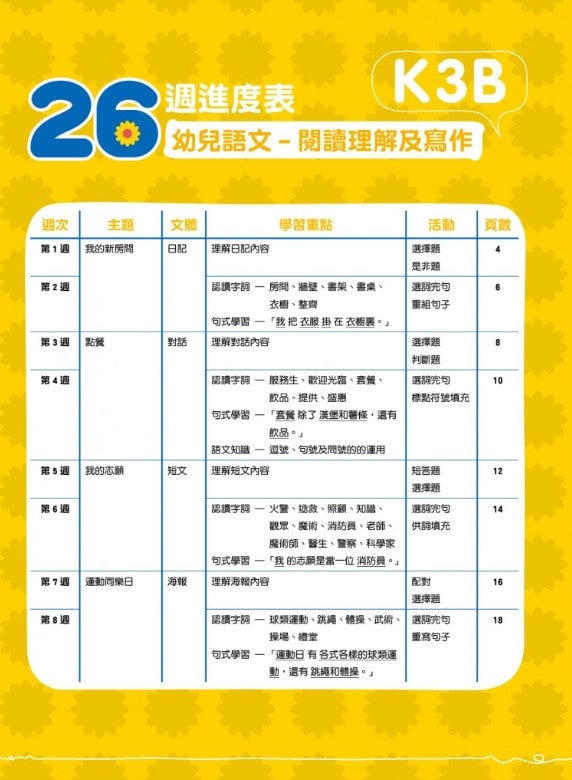 26週學前教育系列 - 幼兒語文 - 閱讀理解及寫作 K3B