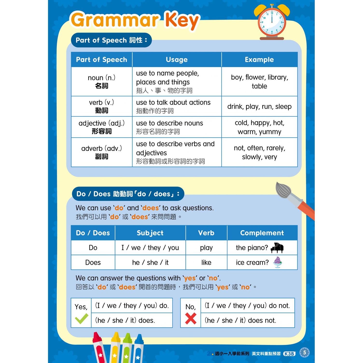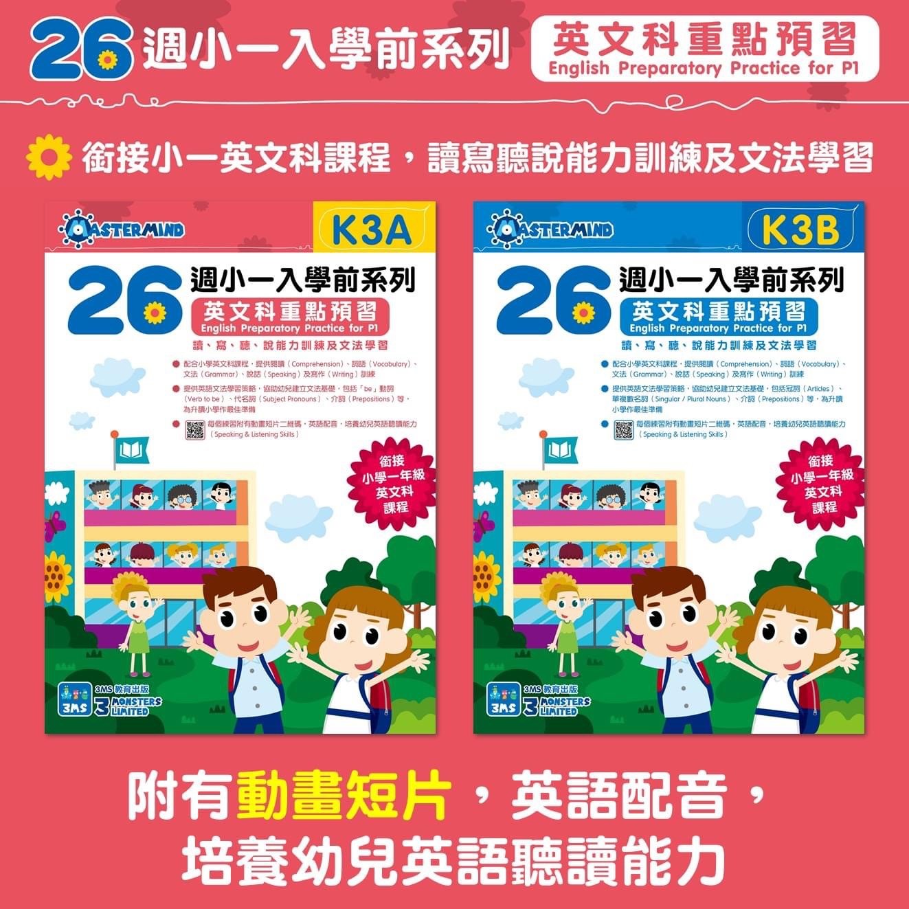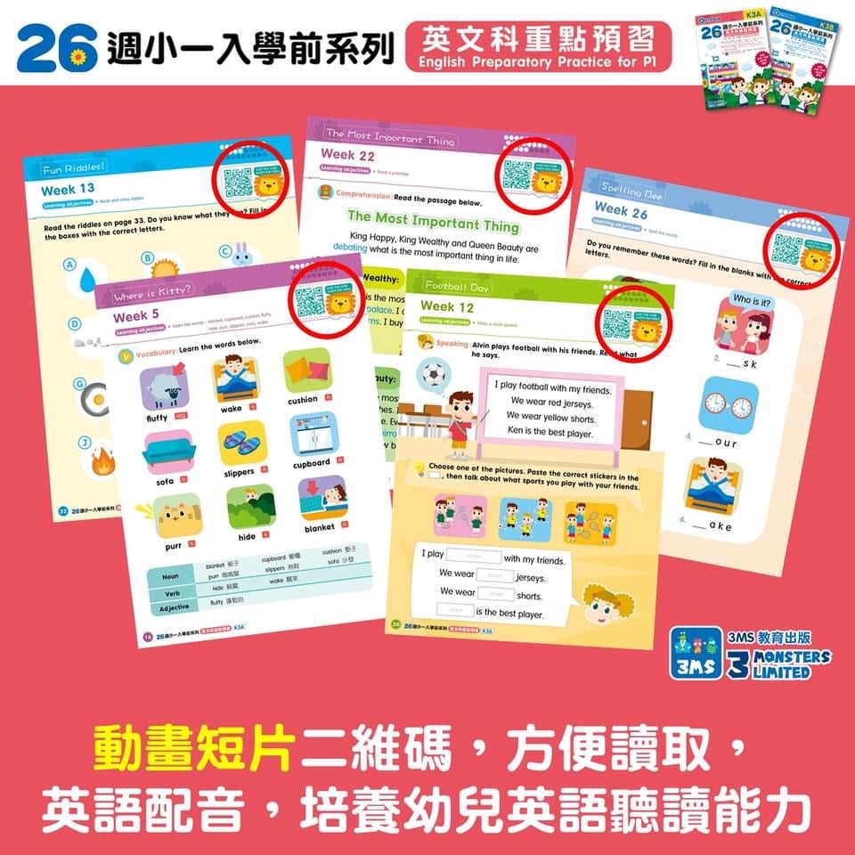 為小一🏫做好準備.最新出版‼️‼️ 幼兒英語升小預備練習💯👀👀 👩🏻🏫 為K3準備升小而設嘅衝刺復習💪🏼拔尖補底 每階段AB兩冊為一組2️⃣更好掌握進度 幼稚園 升小常識練習必備💪 ✅內容配合小學一年級常識科課程,涵蓋小學常識科六個學習範疇,讓幼兒透過配合小學英文科課程,提供閱讀(Comprehension)、詞語(Vocabulary)、文法(Grammar)、說話(Speaking)及寫作(Writing)訓練 ✅提供英語文法學習策略,協助幼兒建立文法基礎,包括「be」動詞 (Verb to be)、代名詞(Subject Pronouns)、介詞(Prepositions)、(Articles)、單複數名詞(Singular / Plural Nouns)、介詞(Prepositions)等,為升讀小學作最佳準備 ✅涵蓋各種小學常見題型,包括選擇題(Multiple Choice)、短答題(Short Answer Question)、長答題(Long Answer Question)、是非題(True/ False)、填充(Fill in the Blank)、找錯處(Proofreading)及重組句子(Sentence Unscramble)等,訓練幼兒答題能力 ✅設有評估,並讓家長了解幼兒的學習進度 ✅每個練習附有動畫短片二維碼,英語配音,培養幼兒英語聽讀能力(Speaking & Listening Skills) 適合4歲到6歲 -K3(升小預備班首選)💪🏻