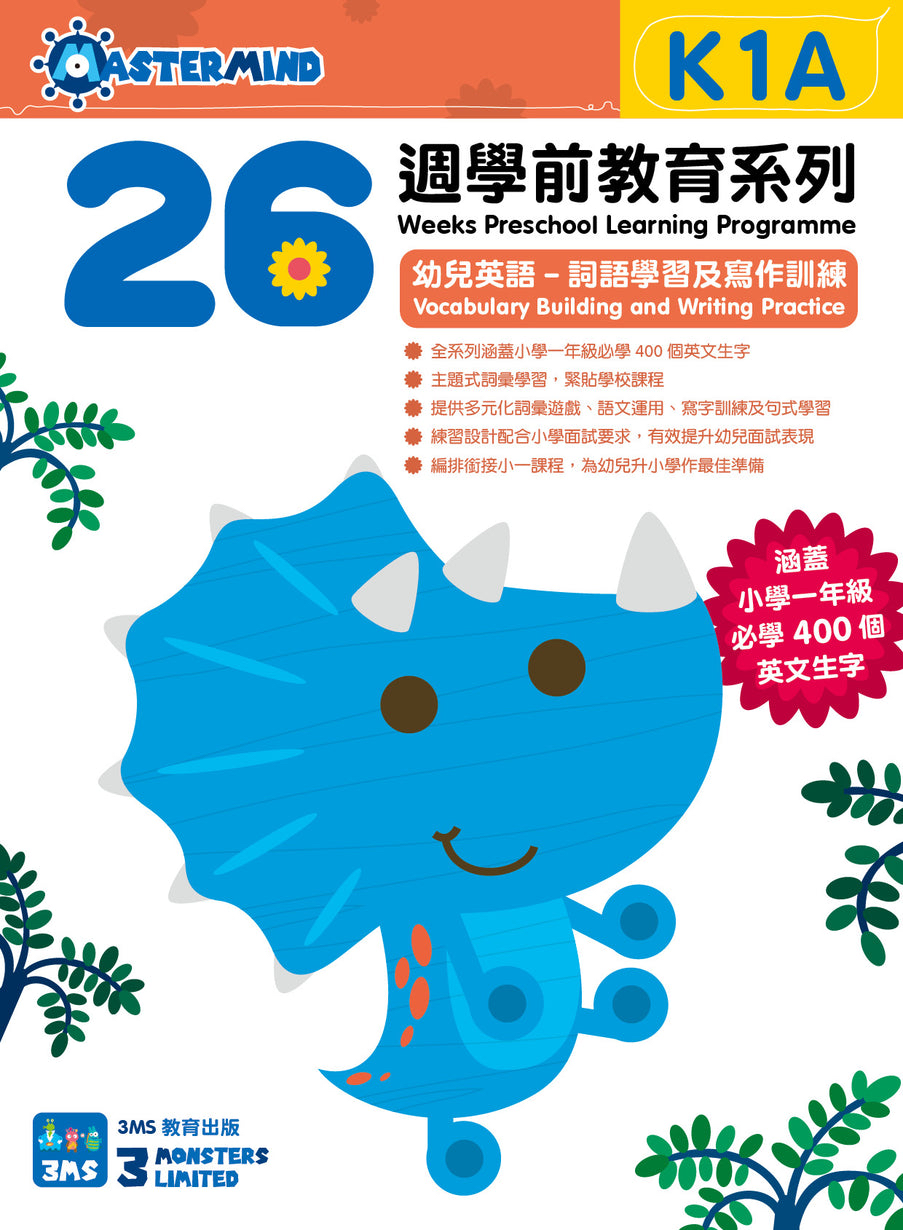 重點推介: 《26週學前教育系列 幼兒英語—詞語學習及寫作訓練》 程度適合K1-K3小朋友,分K1A/B、K2A/B及K3A/B,共6冊 全系列涵蓋小學一年級必學400個英文生字 主題式詞彙學習,緊貼學校課程 提供多元化詞彙遊戲、語文運用、寫字訓練及句式學習 編排銜接小一課程,為幼兒升小學作最佳準備 彩色練習,配以插圖,富有趣味性