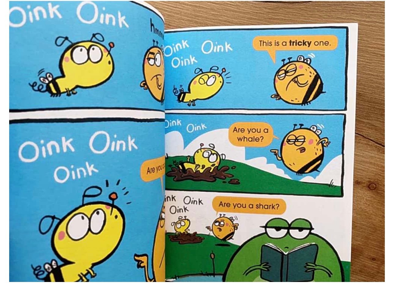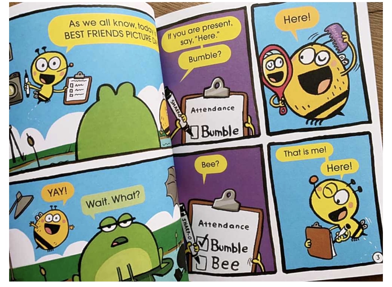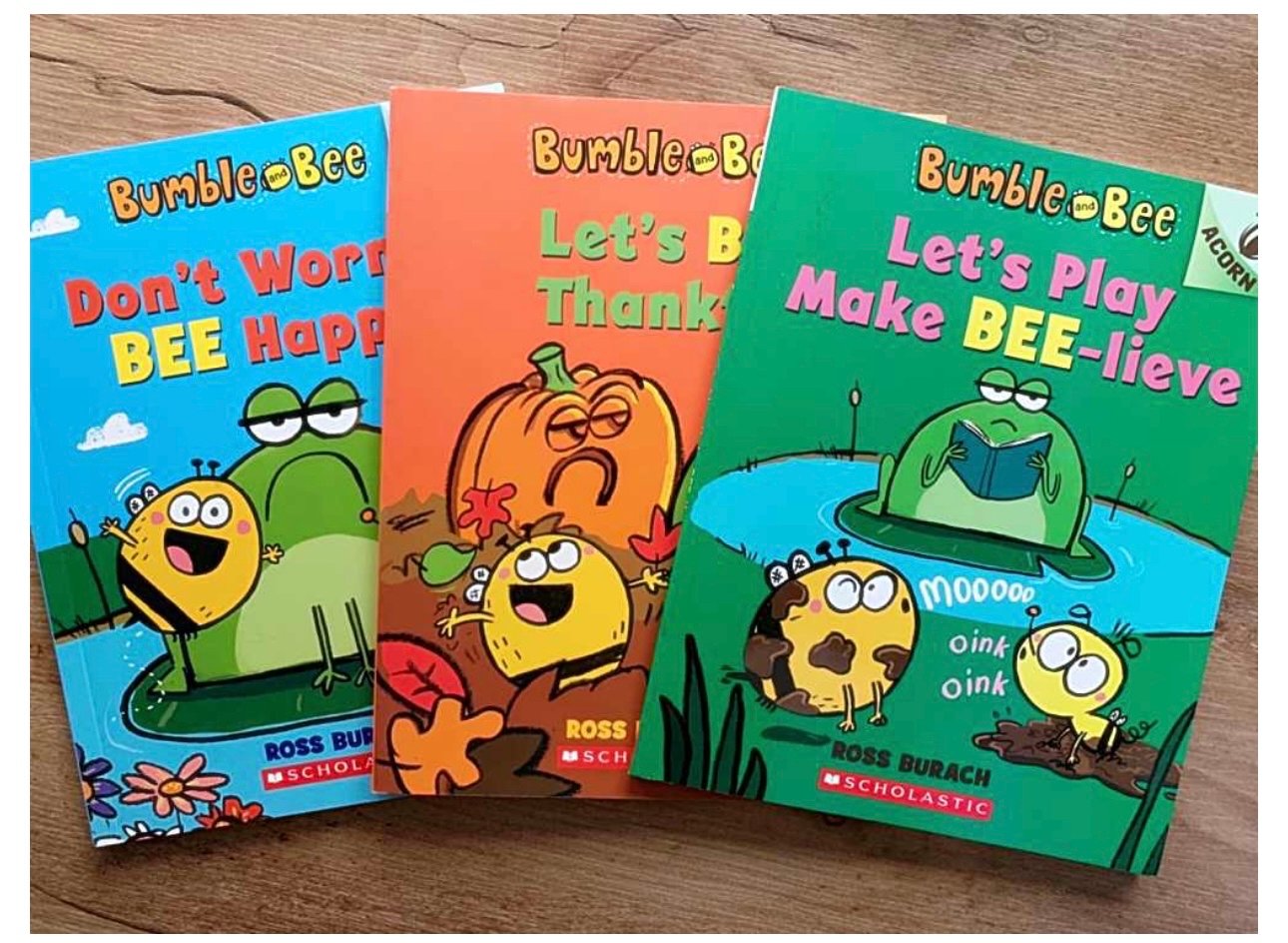 如何培養孩子的英文閱讀能力🗣️,其實這是個滿大的題目🤔也因為題目太大,媽媽/爸爸在閱讀這件事上的角色是陪伴是引領,陪伴他共讀,陪伴他閱讀 ,最後才放手讓他獨立閱讀📖,每個階段都有適合的書單,培養孩子的英文閱讀能力,不如說是讓孩子持續維持閱讀習慣🫶🏻 🐝Bumble and Bee是Scholastic的初階橋樑漫畫,每本都不厚,大約44頁📚 ✔️適合4-6歲的孩子,可做為親子共讀書單,也可做為孩子的初階閱讀書單,🌈特色是色彩鮮豔,圖多字少,所以對於剛進入閱讀的孩子負擔也不會太大👍🏻 📚系列有三集: 1️⃣Don’t Worry, Bee Happy: An Acorn Book (Bumble and Bee) 2️⃣Let’s Play Make Bee-lieve: An Acorn Book (Bumble and Bee) 3️⃣Let’s Bee Thankful (Bumble and Bee #3): An Acorn Book (3) 💥基本上就好朋友大黃蜂、蜜蜂和青蛙之間的故事 ☀️Don’t Worry, Bee Happy的故事從好朋友拍照📷日開始⋯⋯ 最後在大黃蜂和蜜蜂的創意下,終於拍出三個人的好朋友微笑照。 ❤️這個故事雖然短,卻告訴孩子做事情不要被框架侷限,有時候換個方式就能解決問題🫶🏻 📚每一本都會有三個不同的故事,因為都是短篇故事,所以很適合初階閱讀📖故事內容和主角也相對單純,也會更容易建立孩子閱讀的成就感🥰 ☀️適合4-6歲,幼稚園到小學低年級皆適合