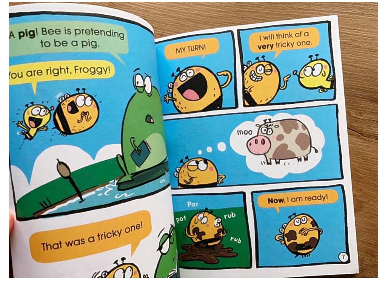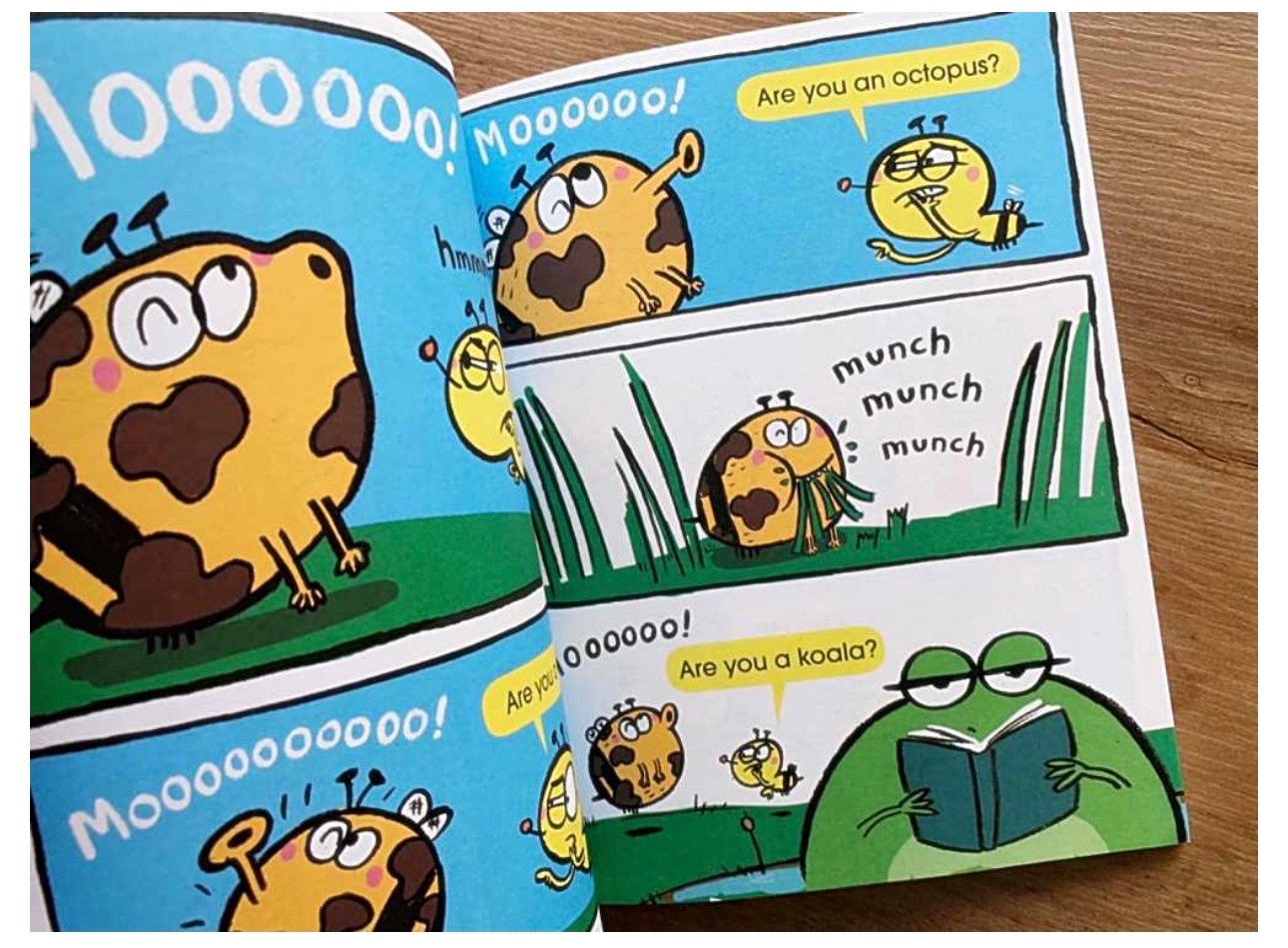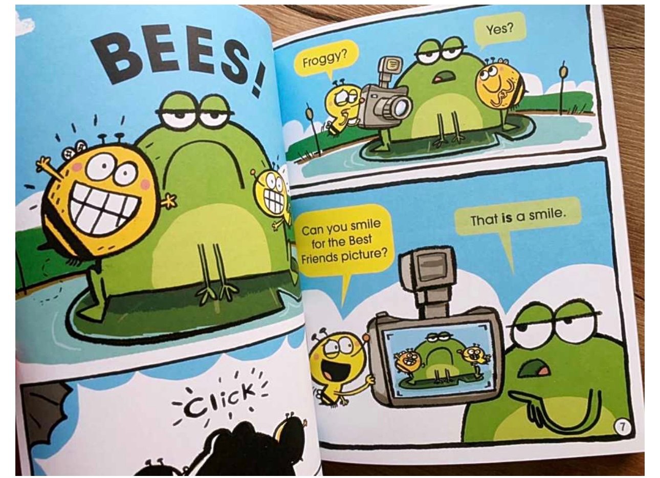 如何培養孩子的英文閱讀能力🗣️,其實這是個滿大的題目🤔也因為題目太大,媽媽/爸爸在閱讀這件事上的角色是陪伴是引領,陪伴他共讀,陪伴他閱讀 ,最後才放手讓他獨立閱讀📖,每個階段都有適合的書單,培養孩子的英文閱讀能力,不如說是讓孩子持續維持閱讀習慣🫶🏻 🐝Bumble and Bee是Scholastic的初階橋樑漫畫,每本都不厚,大約44頁📚 ✔️適合4-6歲的孩子,可做為親子共讀書單,也可做為孩子的初階閱讀書單,🌈特色是色彩鮮豔,圖多字少,所以對於剛進入閱讀的孩子負擔也不會太大👍🏻 📚系列有三集: 1️⃣Don’t Worry, Bee Happy: An Acorn Book (Bumble and Bee) 2️⃣Let’s Play Make Bee-lieve: An Acorn Book (Bumble and Bee) 3️⃣Let’s Bee Thankful (Bumble and Bee #3): An Acorn Book (3) 💥基本上就好朋友大黃蜂、蜜蜂和青蛙之間的故事 ☀️Don’t Worry, Bee Happy的故事從好朋友拍照📷日開始⋯⋯ 最後在大黃蜂和蜜蜂的創意下,終於拍出三個人的好朋友微笑照。 ❤️這個故事雖然短,卻告訴孩子做事情不要被框架侷限,有時候換個方式就能解決問題🫶🏻 📚每一本都會有三個不同的故事,因為都是短篇故事,所以很適合初階閱讀📖故事內容和主角也相對單純,也會更容易建立孩子閱讀的成就感🥰 ☀️適合4-6歲,幼稚園到小學低年級皆適合