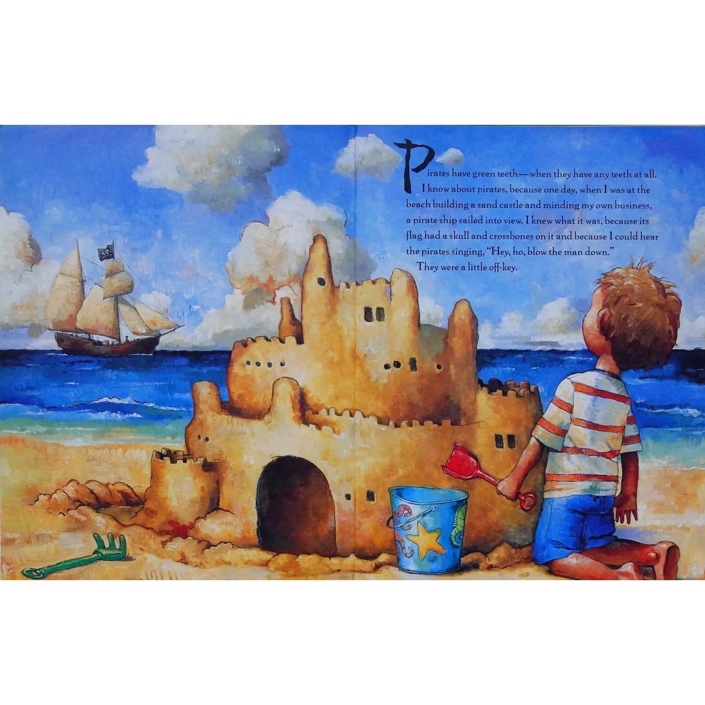 When Jeremy Jacob sets off on a pirate adventure, he loves doing everything the pirates do . . . but then he finds out what they DON'T do. Pirates have green teeth—when they have any teeth at all. I know about pirates, because one day, when I was at the beach building a sand castle and minding my own business, a pirate ship sailed into view.So proclaims Jeremy Jacob, a boy who joins Captain Braid Beard and his crew in this witty look at the finer points of pirate life by the Caldecott Honor–winning illustrator David Shannon and the storyteller Melinda Long. Jeremy learns how to say “scurvy dog,” sing sea chanteys, and throw food . . . but he also learns that there are no books or good night kisses on board: “Pirates don’t tuck.” A swashbuckling adventure with fantastically silly, richly textured illustrations that suit the story to a T.