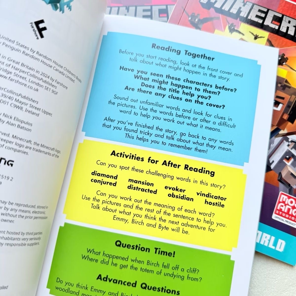Minecraft Young Reader 5-Book Set Level 2 《我的世界》🌟幼年讀本 (5冊套裝) 🌟專為4-8歲初階讀者設計📚📚 以《我的世界》以火熱的沙盒遊戲為藍本 讓孩子👧🏻👦🏻在喜愛的遊戲和故事中💡開始初級閱讀📖 練習閱讀技巧和擴大詞彙量🥰 ✅簡短的句子和熟悉的詞彙 能幫助孩子養成閱讀信心🔍 📖 Book Titles | 套裝書目 1. Mobs in the Mansion 2. Mobs in the Overworld 3. Survival Mode 4. The Sky‘s the Limit! 5. Minecraft Studios